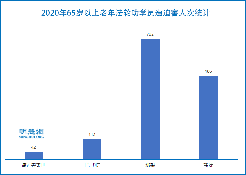 ![]() 图1:2020年65岁以上老年法轮功学员遭迫害人次统计 |