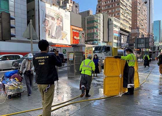 香港食环署滋扰法轮功 青关会头目继续骚扰