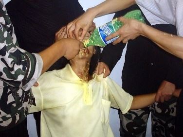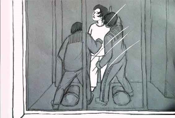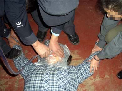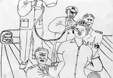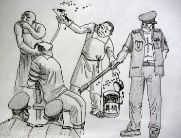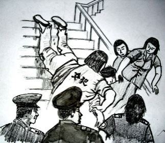 ![]() 中共酷刑示意图:殴打、撞头 |