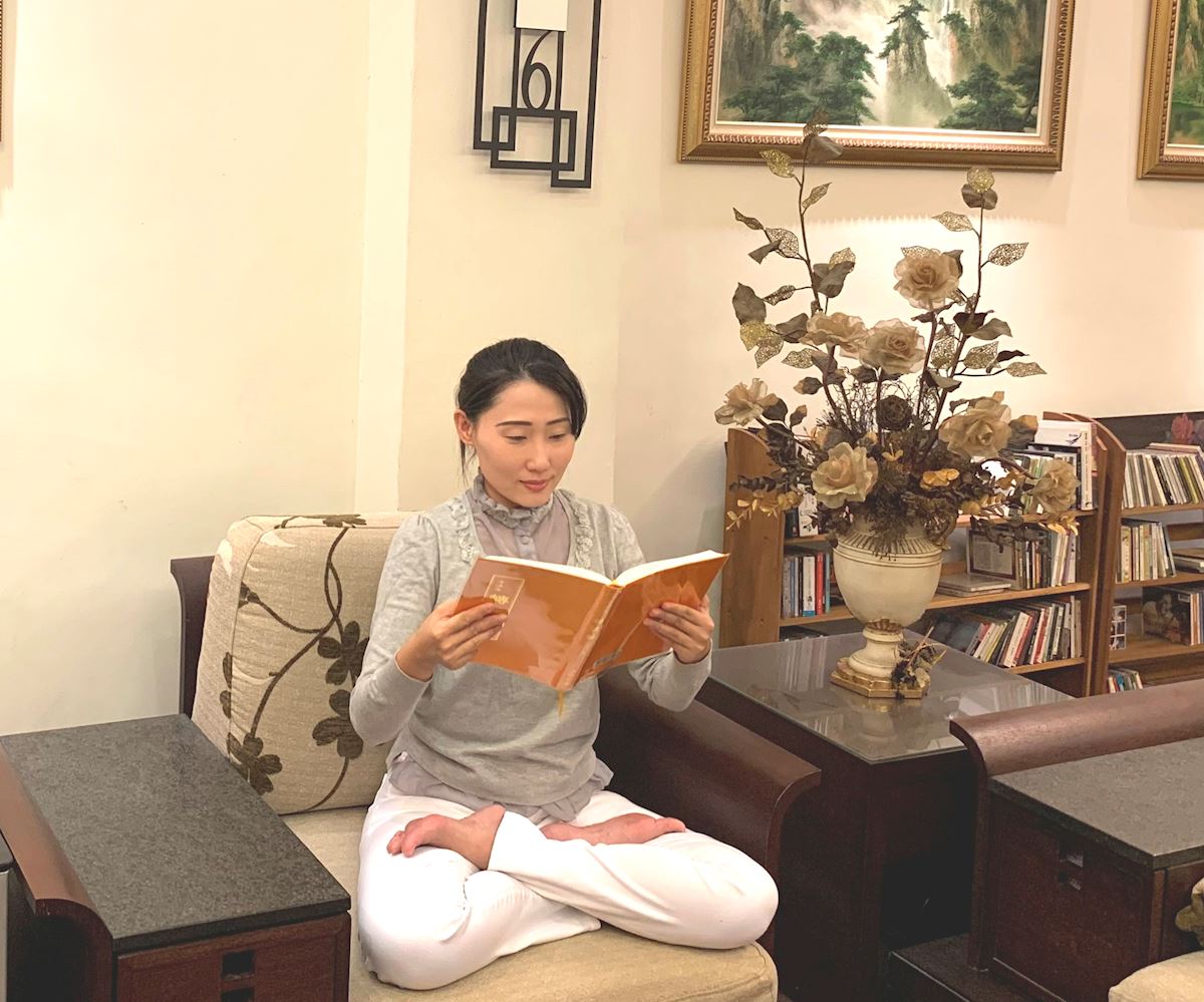 ![]() 图1:王郁青老师从《转法轮》一书中重新拥有焕然一新的人生。图为她正在阅读《转法轮》。 |