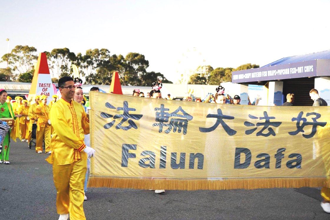 两条金龙和大型粉色莲花布置在法轮功展位两旁,很多游客被现场美丽祥和的能量场吸引。八天展示期间,有不少民众驻足观赏法轮功学员们优美祥和的五套功法展示,并前来询问当地炼功点信息,打算学炼。一些游客当场学炼五套功法,一位住在珀斯北部索伦托(Sorrento)地区的女士表示,在他们地区有一群人想学法轮功,并邀请学员前去教功。
