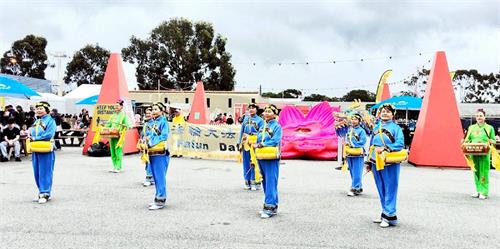 傍晚时分,法轮功学员的腰鼓队、仙女队和舞龙队集聚广场,组成了颇有声势的游行队伍,吸引无数观众驻足观赏。现场人头攒动,热闹非凡。学员们的精彩表演,获得好评,