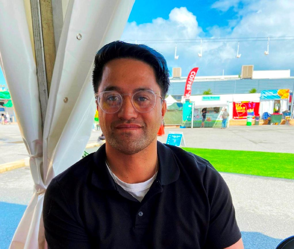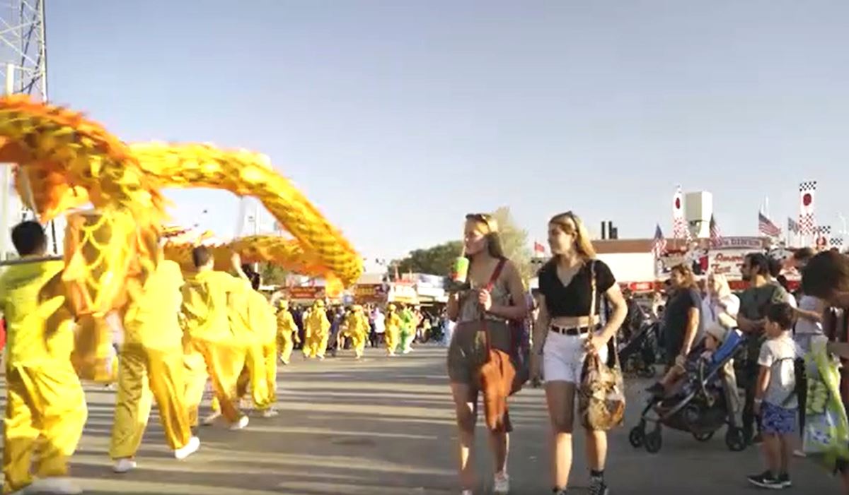 摩根先生(Andrew Morgan)今年三十五岁,是农展会一家饮料摊位的老板。他趁早上人潮还不多时,前来和法轮功学员交谈。他说:“我常在社交媒体上和其它活动中看到法轮功。我认为法轮功学员们做的事,如腰鼓、功法演示等都带有非常好的能量,这吸引我过来。”