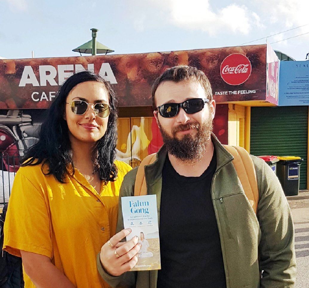 从事海运管理的柯洛斯顿先生(Billy Croston)和女友看到法轮功学员的展位便前来询问。他说:“我知道法轮功在中国遭受的迫害已有一段时间了。”他和女友听闻法轮功学员被中共活摘器官的惨烈事实后,感到不可思议和愤慨。