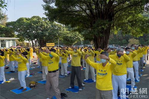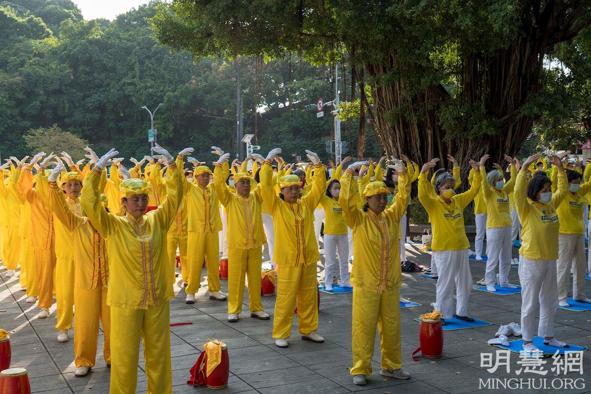 二零二一年十一月十四日下午,高雄部份法轮功学员,来到高雄著名风景区“莲池潭”炼功弘法传真相,希望把法轮大法福益大众的好处介绍给有缘人。活动中有腰鼓队表演和法轮功五套功法演示,祥和的炼功场吸引不少过路民众驻足观看,许多有缘人停下来接过传单,了解真相、拍照留念,并有民众当场学功。