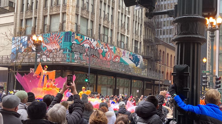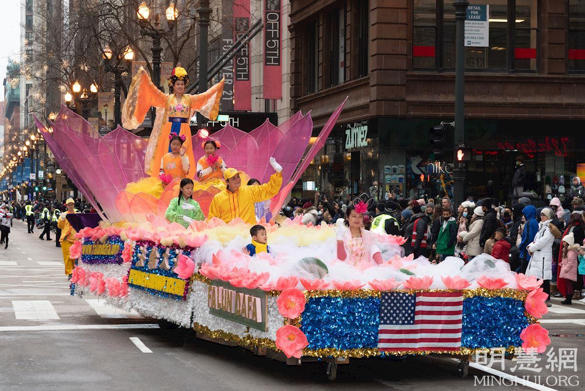 <英文版: http://en.minghui.org/html/articles/2021/11/29/196784.html>芝加哥感恩节大游行 法轮功团队再成亮点