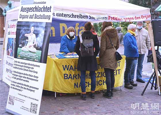 德国部份法轮功学员在海德堡老城本生广场举办活动,讲述法轮功反迫害真相,揭露中共活摘器官的罪恶。