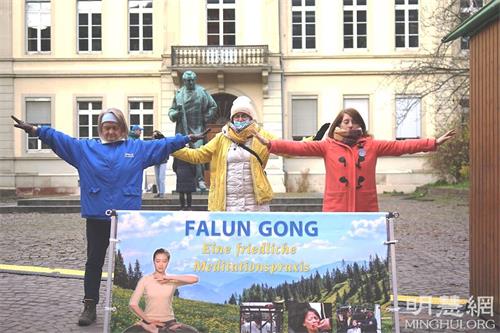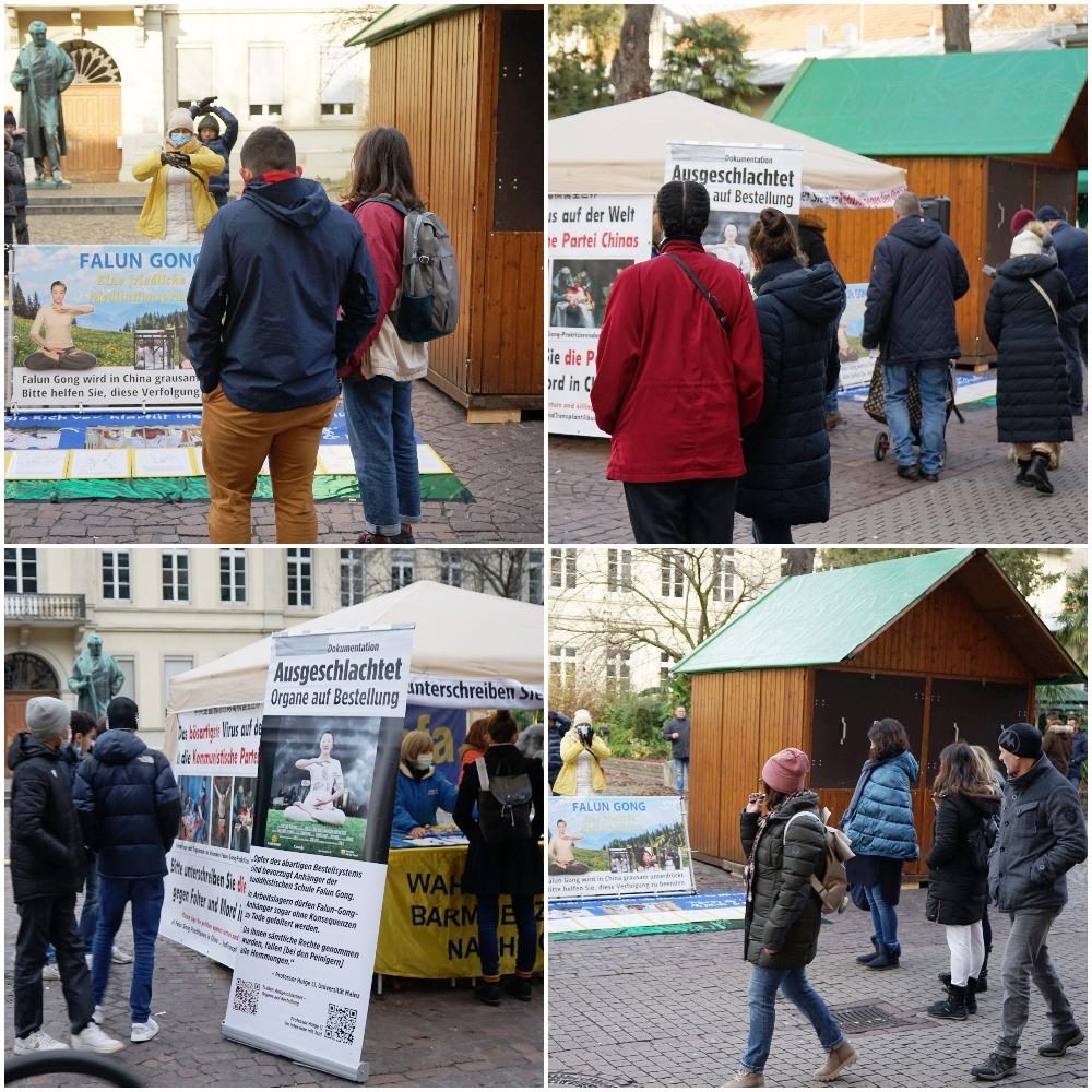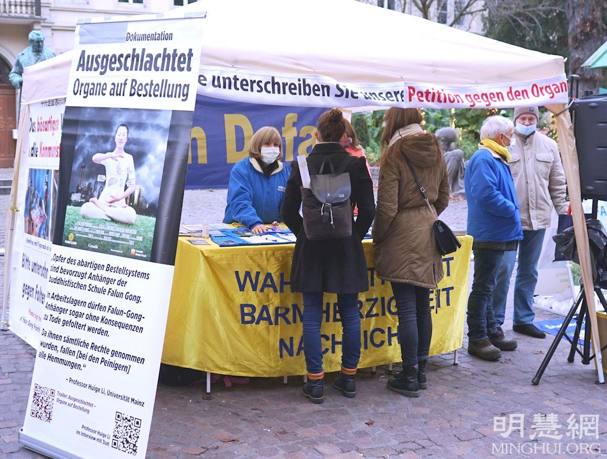 ![]() 图1~2:二零二一年十二月十一日,法轮功学员在德国海德堡老城本生广场(Bunsenplatz)举办活动,讲述法轮功反迫害真相,揭露中共活摘器官的罪恶。 |