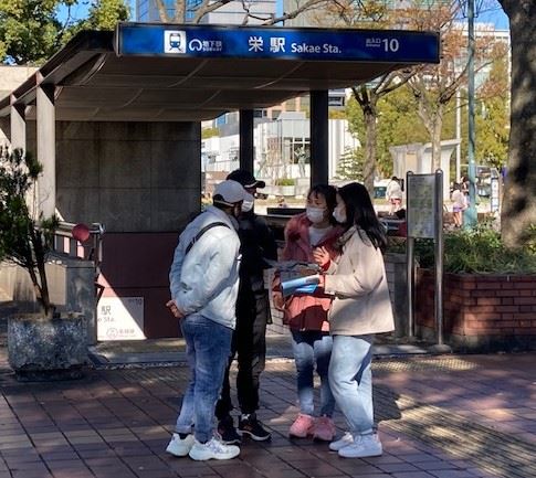 ![]() 图1:十一月二十八日,法轮功学员在日本名古屋市荣的喷水附近炼功 |