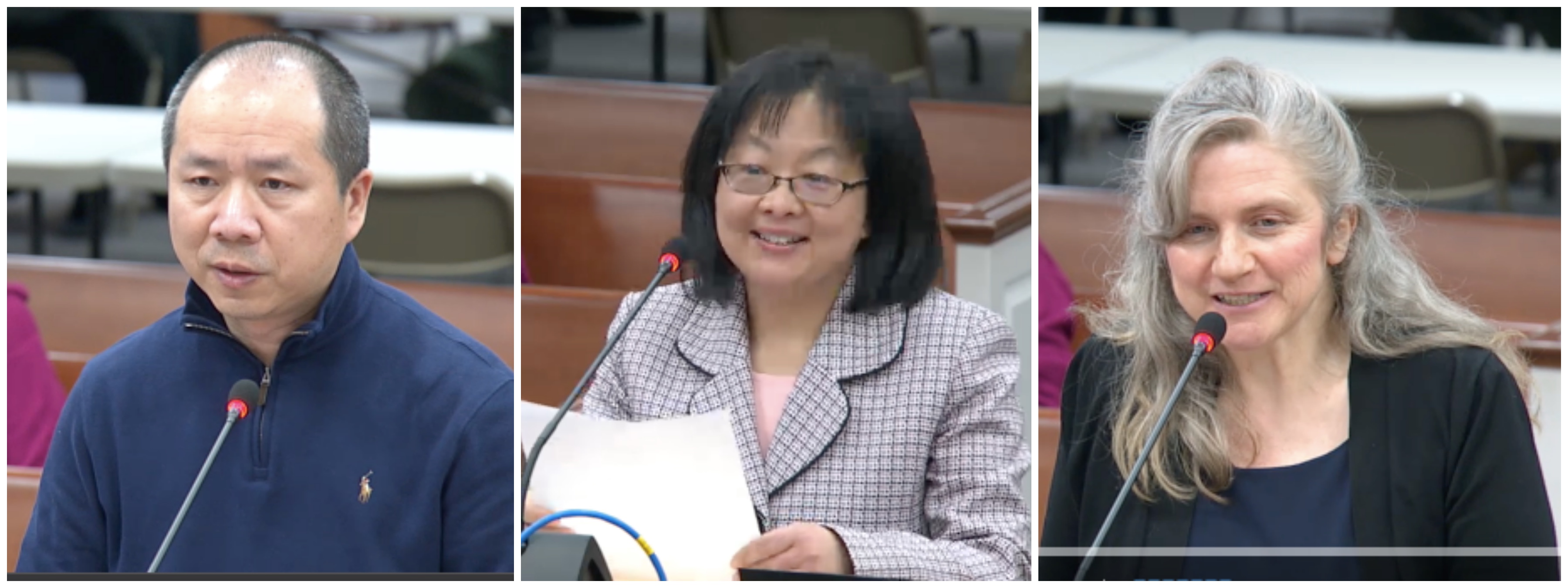 ![]() 图4: 法轮功学员代表在会上发言。从左至右:亚历克斯·王(Alex Wang)、蒂娜·唐(Tiny Tang)和凯瑞·努涅斯(Kery Nunez) |