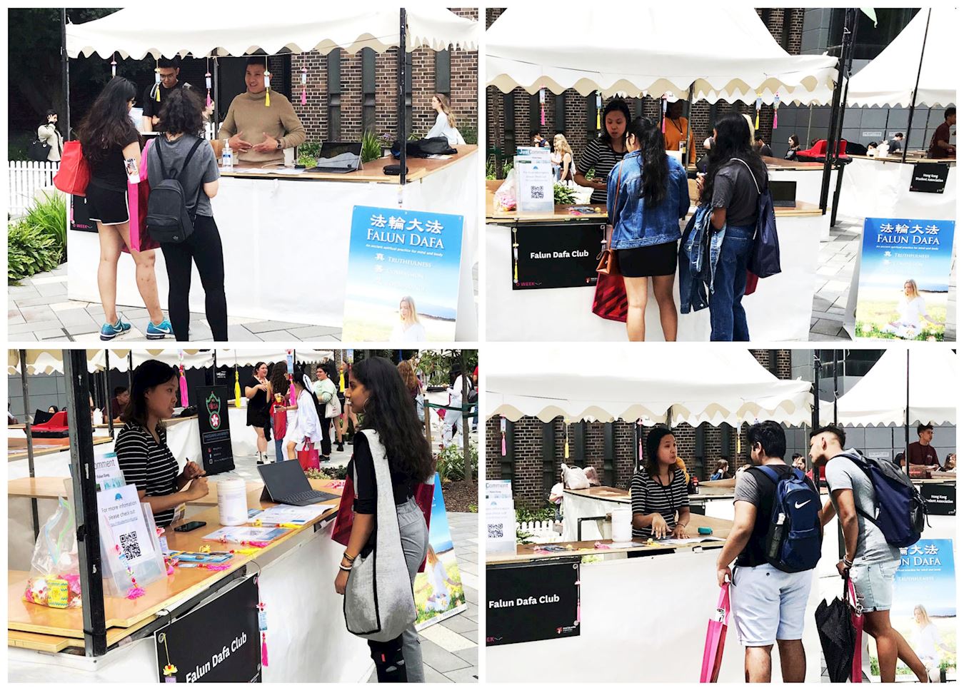 '图1~2:在悉尼麦考瑞大学(Macquarie University)迎新周活动中,众多师生和新生前来了解法轮大法真相。'