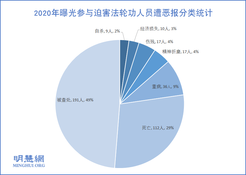 ![]() 图2:2020年曝光参与迫害法轮功人员遭恶报分类统计 |
