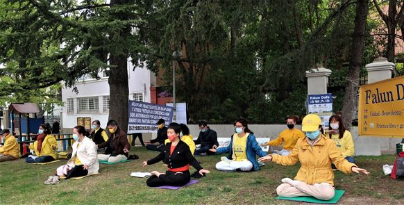 ![]() 图9~12:二零二一年四月二十五日在台北市政府前广场举行纪念中国法轮功学员四·二五和平上访二十二周年记者会,记者会后法轮功演炼五套功法的大炼功活动。 |