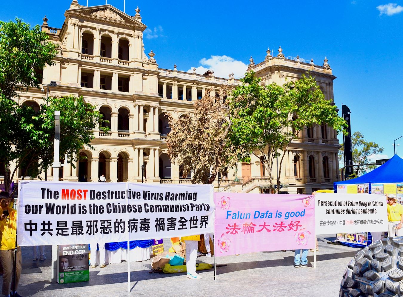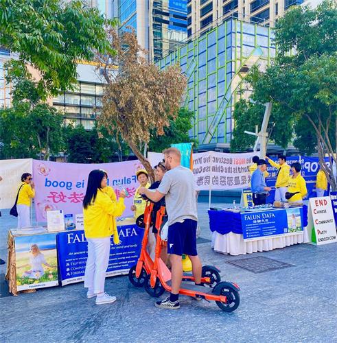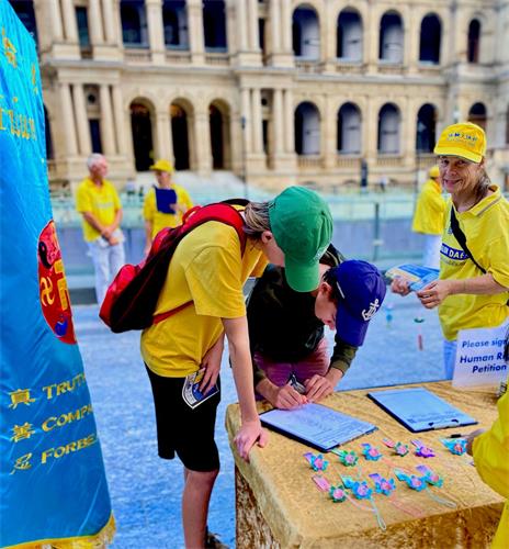 ![]() 图1~3:昆士兰法轮功学员在布里斯班广场(Brisbane Square)举行讲真相活动 |
