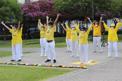 【明慧网二零二一年四月二十九日】二零二一年四月二十四日,秘鲁法轮功学员为纪念上万名中国法轮功学员“四·二五”和平上访二十二周年,在首都利马市中心的自由广场(Plaza de la Democracia)以功法演示、真相画展、烛光悼念等活动形式,向秘鲁民众揭示中共残酷迫害法轮功的真相,并呼吁制止迫害。