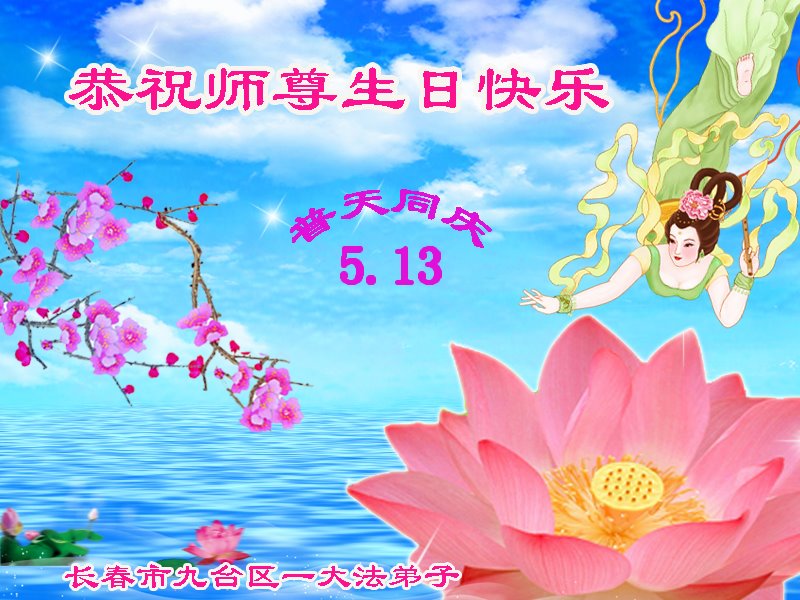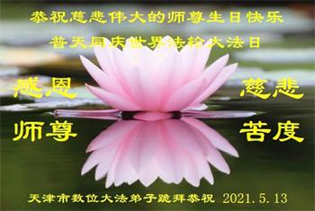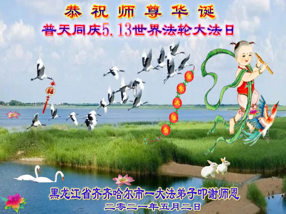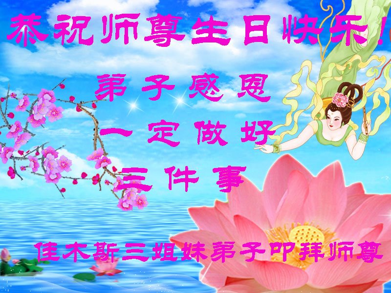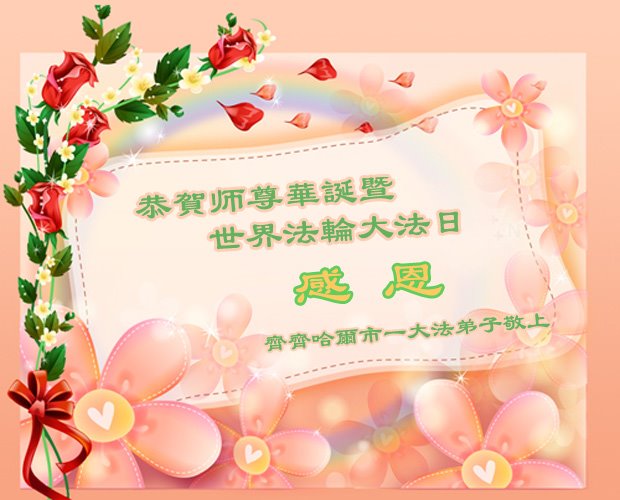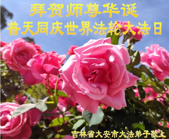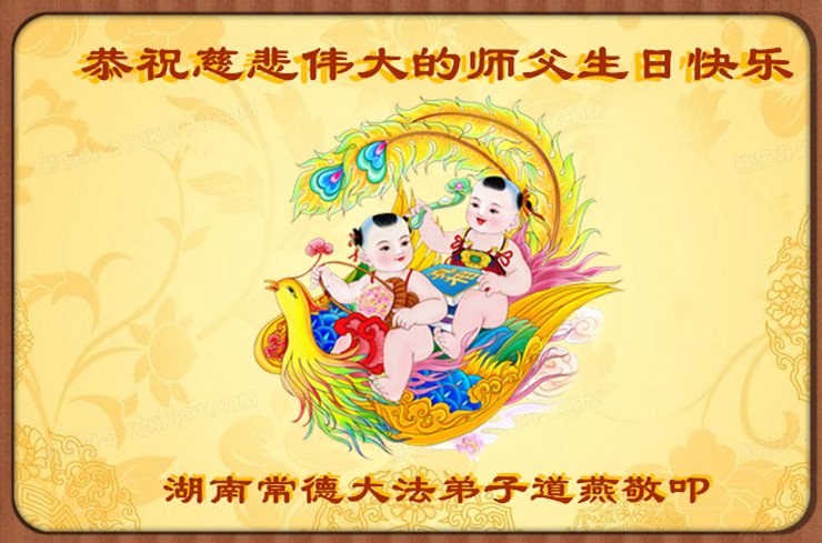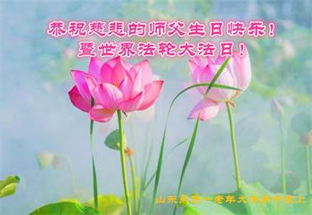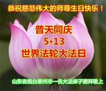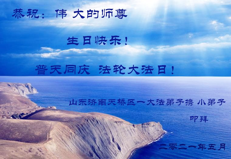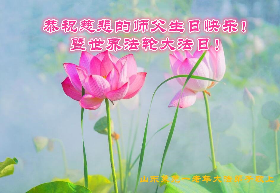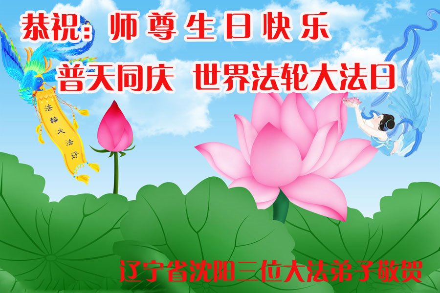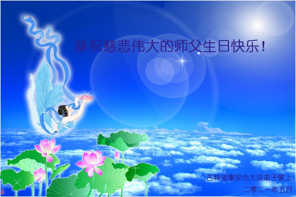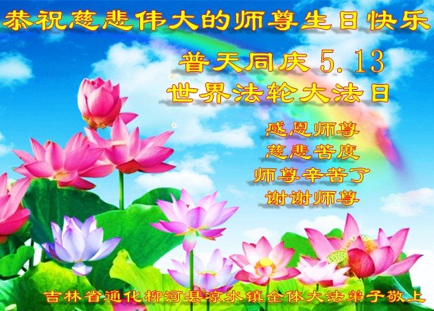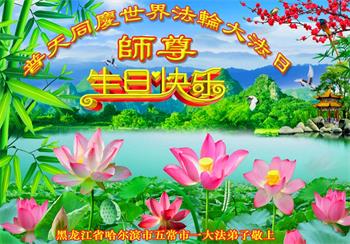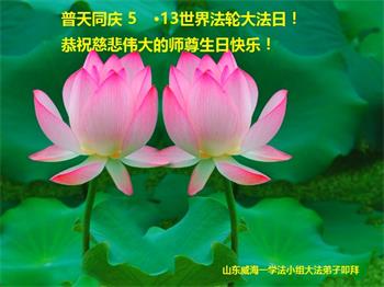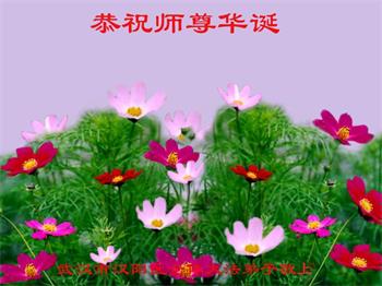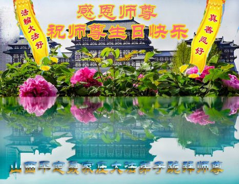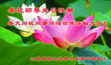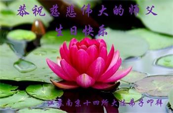 师尊您好!弟子恭祝师尊华诞!恭贺世界法轮大法日!在这普天同庆的日子里,弟子同歌同颂师尊之无量慈悲:感恩师尊把大法传给弟子,指引我们走上返本归真的大道;感恩师尊教导弟子做一个为他的生命,危难中不忘救度众生。弟子一定不忘使命,学好法,多救人,带领众生圆满随师还!弟子叩谢师恩!