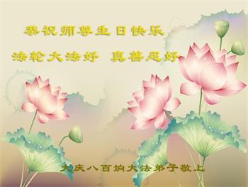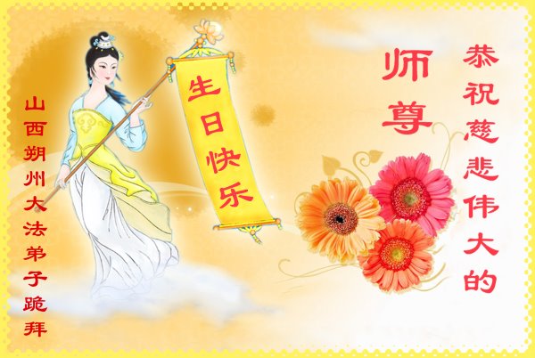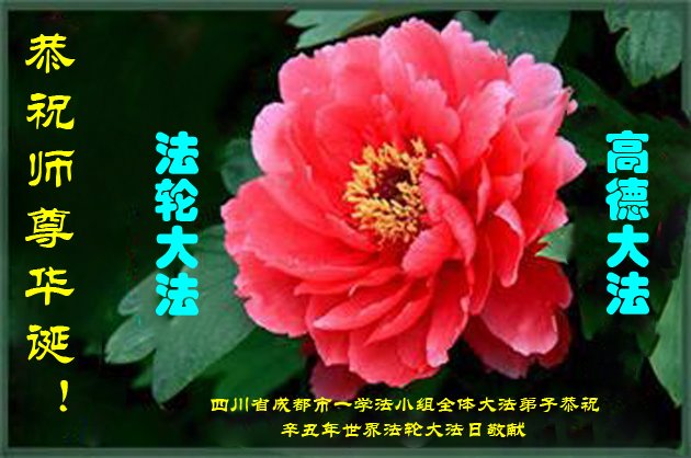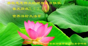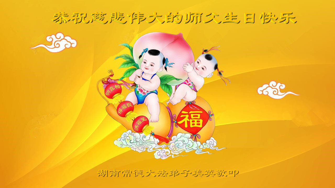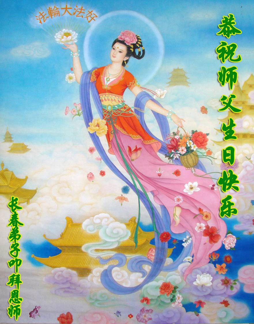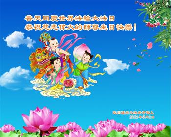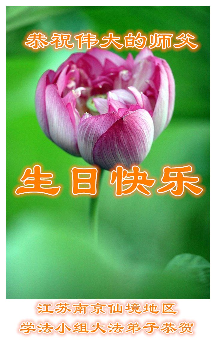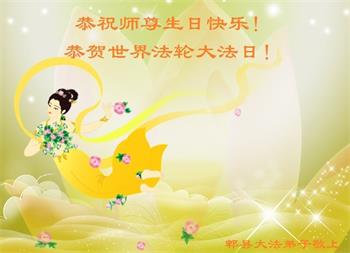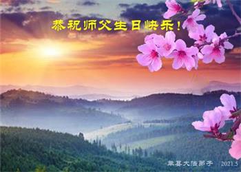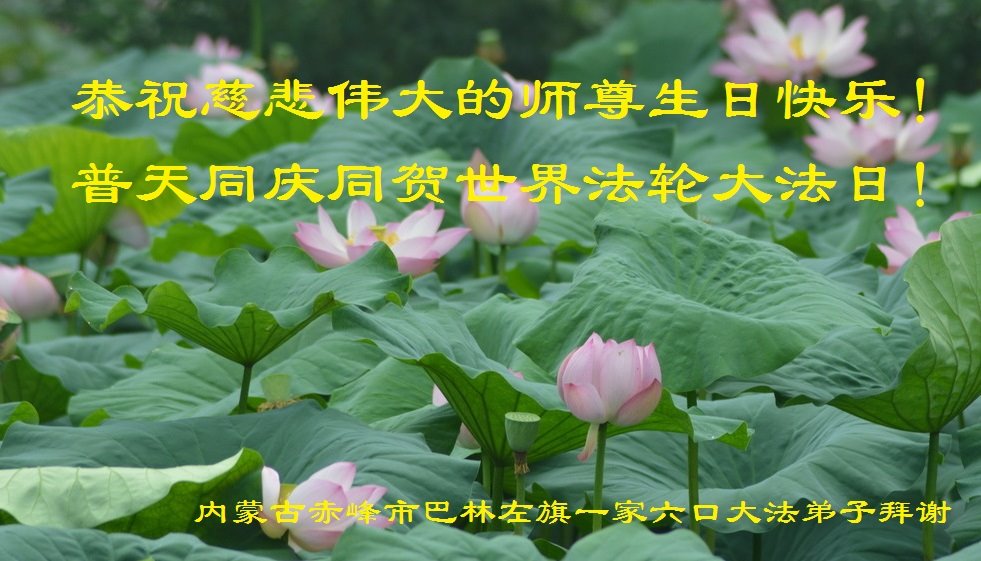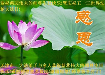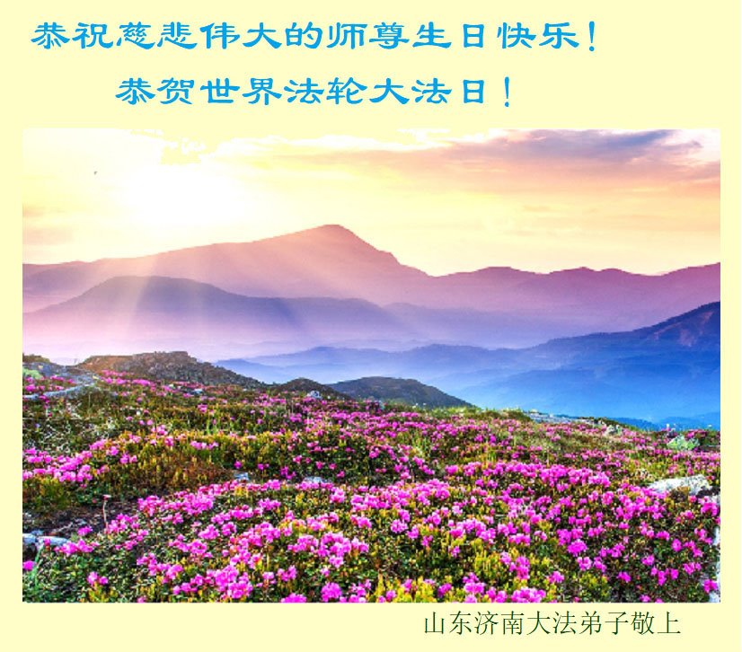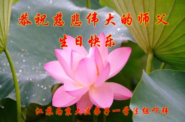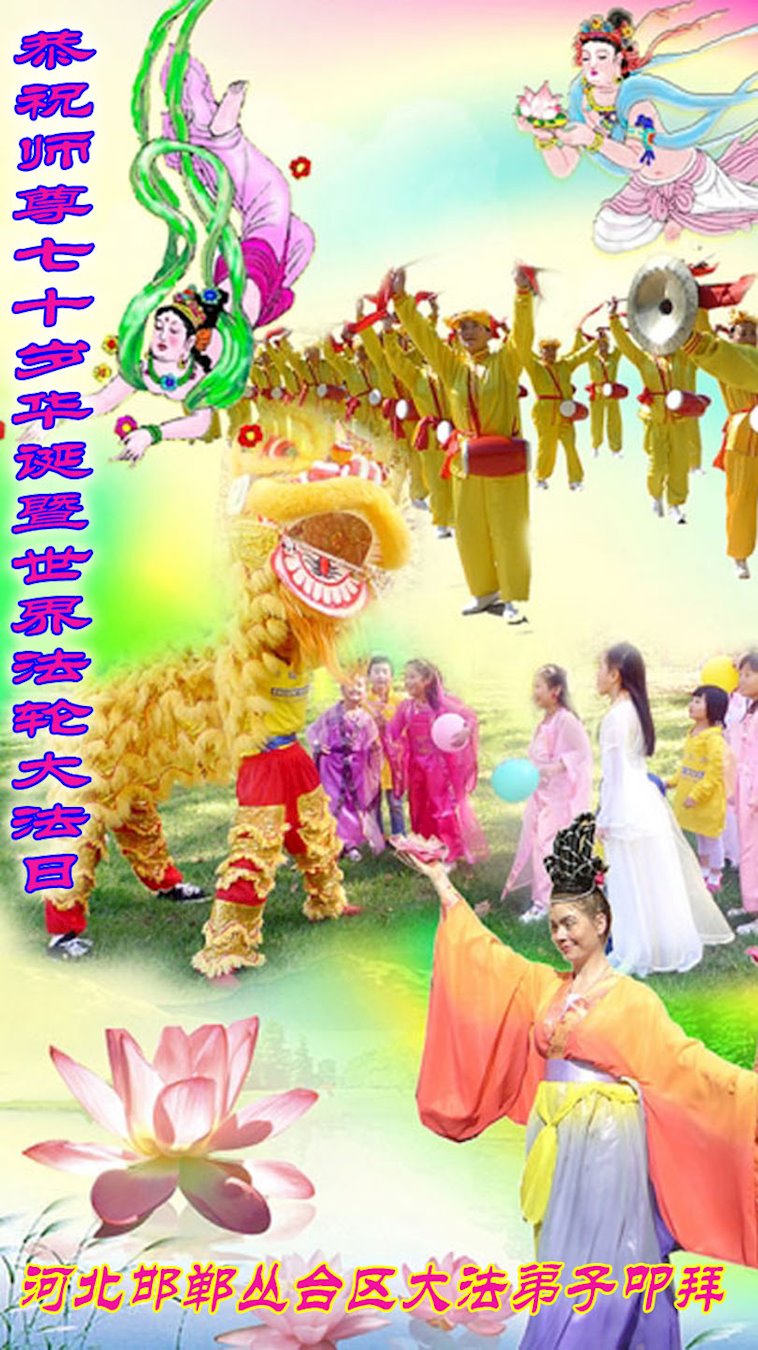 师尊您好!弟子恭祝师尊华诞!恭贺世界法轮大法日!在这普天同庆的日子里,弟子同歌同颂师尊之无量慈悲:感恩师尊把大法传给弟子,指引我们走上返本归真的大道;感恩师尊教导弟子做一个为他的生命,危难中不忘救度众生。弟子一定不忘使命,学好法,多救人,带领众生圆满随师还!弟子叩谢师恩!