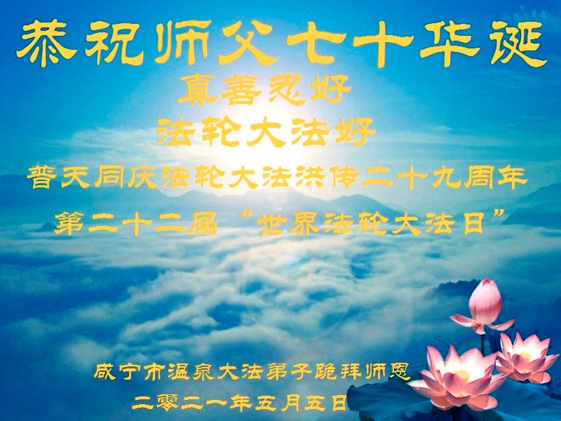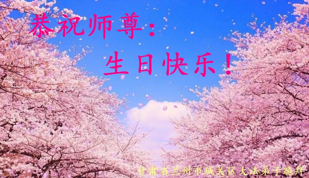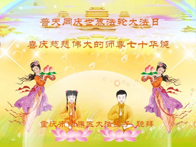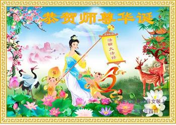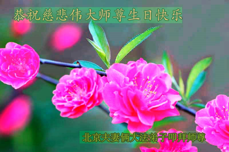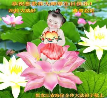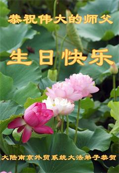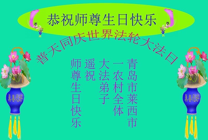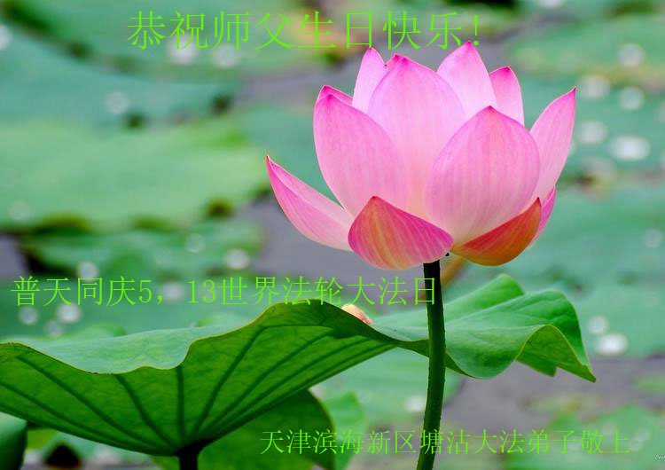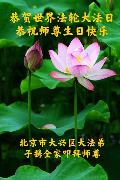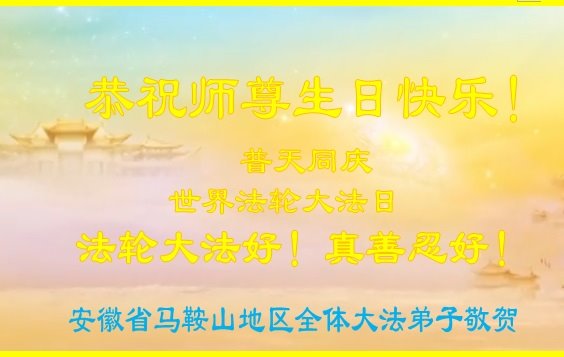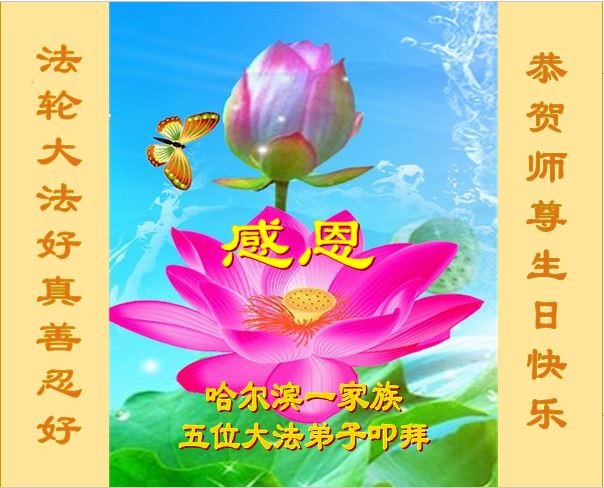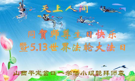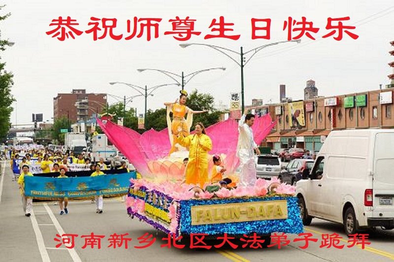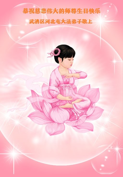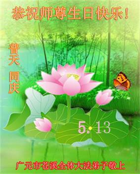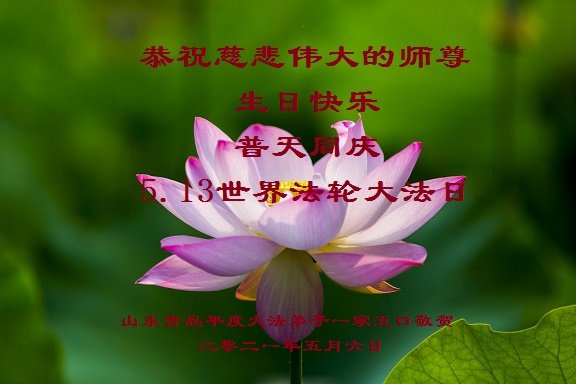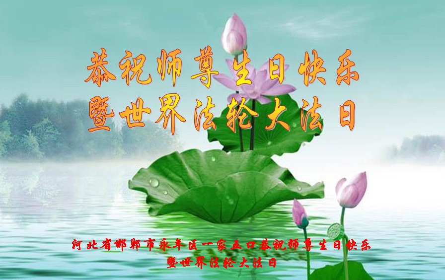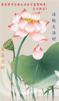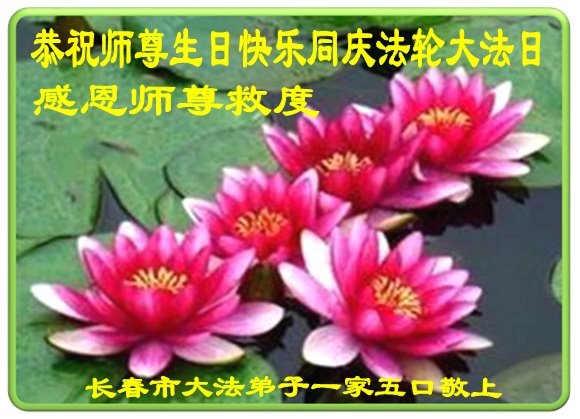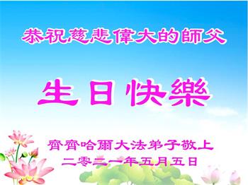 师尊您好!弟子恭祝师尊华诞!恭贺世界法轮大法日!在这普天同庆的日子里,弟子同歌同颂师尊之无量慈悲:感恩师尊把大法传给弟子,指引我们走上返本归真的大道;感恩师尊教导弟子做一个为他的生命,危难中不忘救度众生。弟子一定不忘使命,学好法,多救人,带领众生圆满随师还!弟子叩谢师恩!
