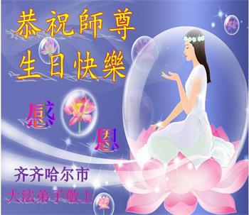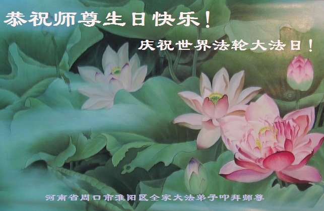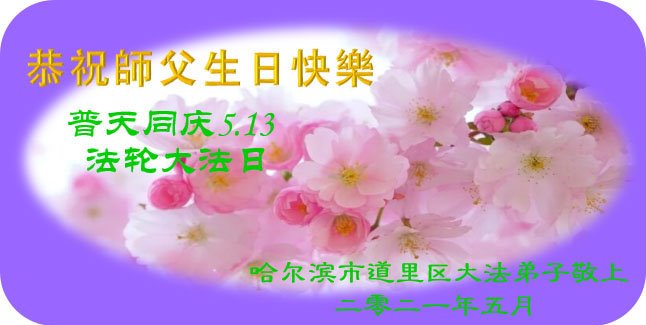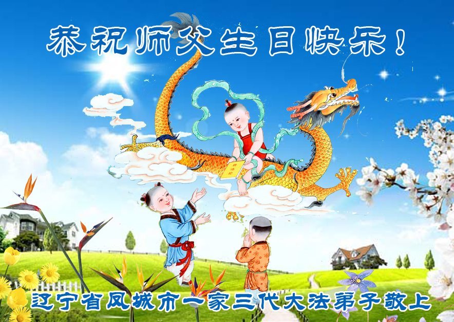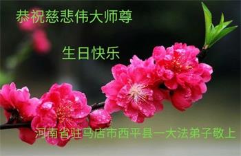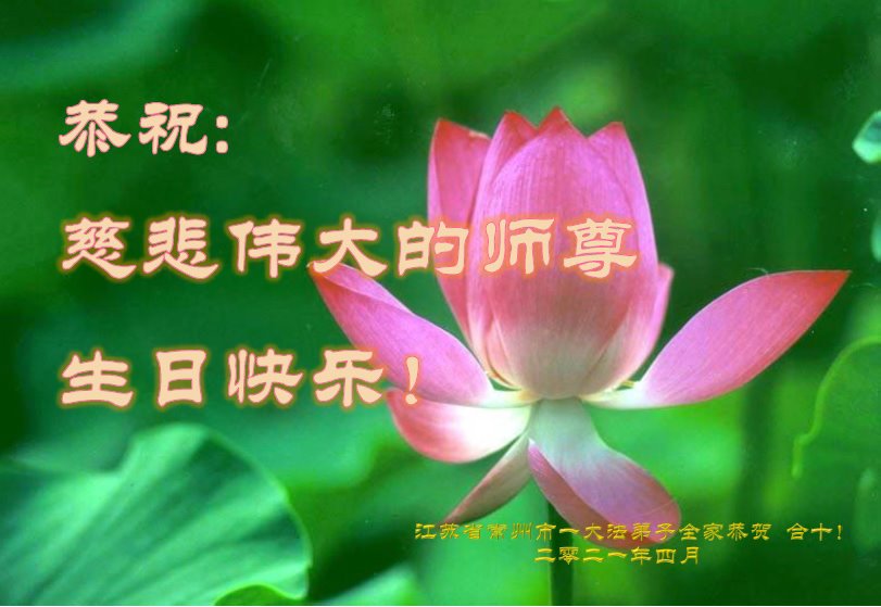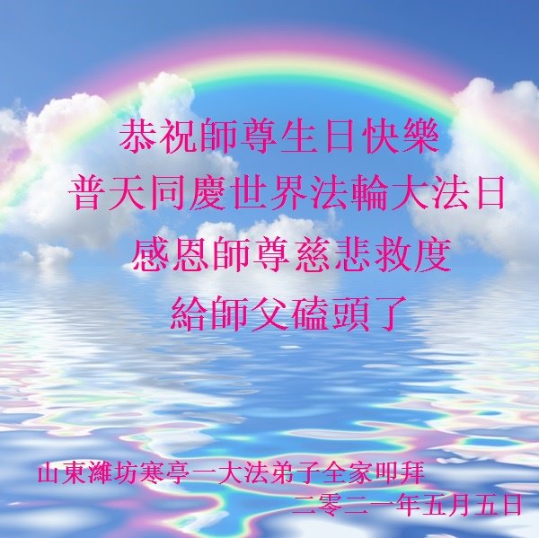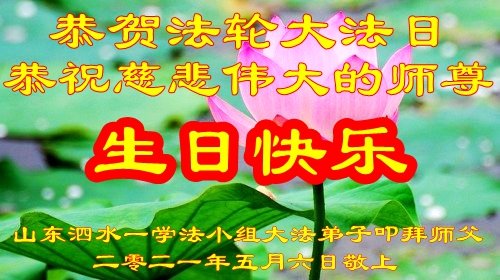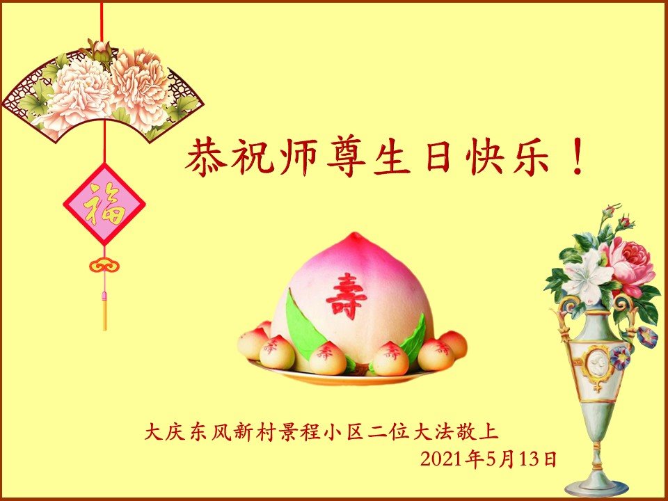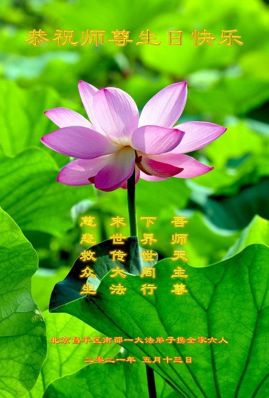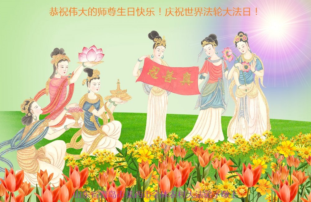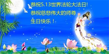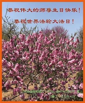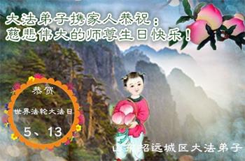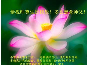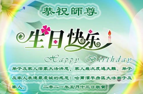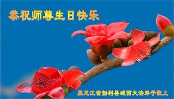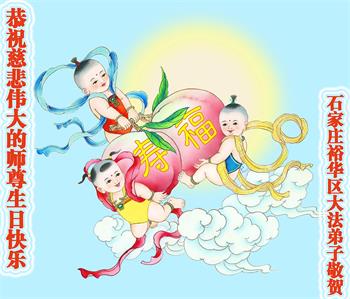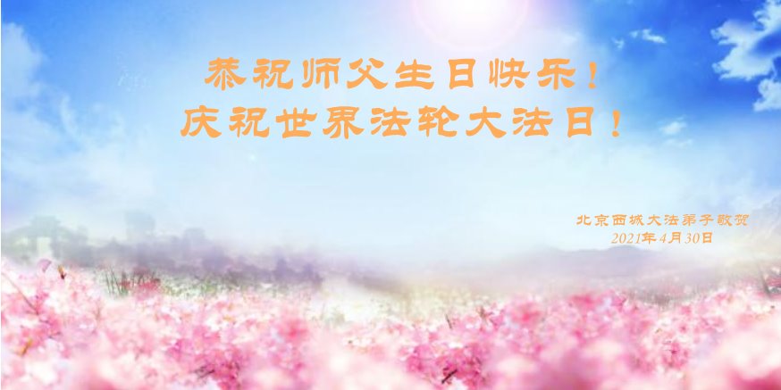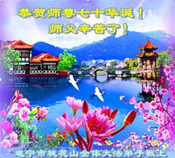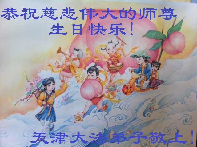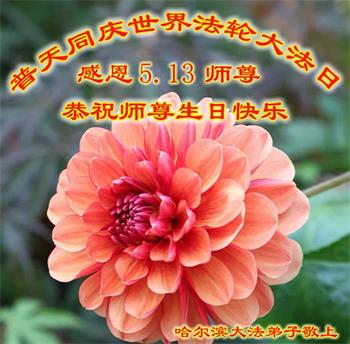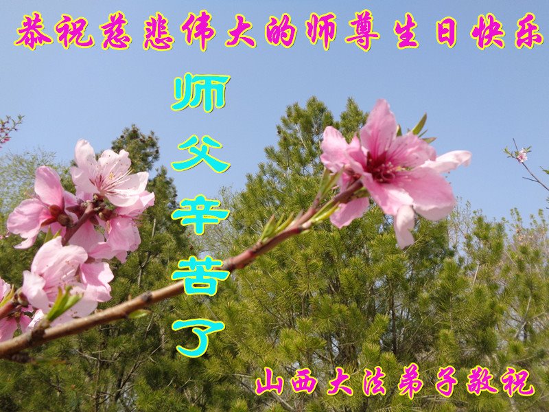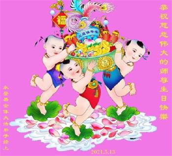 师尊您好!弟子恭祝师尊华诞!恭贺世界法轮大法日!在这普天同庆的日子里,弟子同歌同颂师尊之无量慈悲:感恩师尊把大法传给弟子,指引我们走上返本归真的大道;感恩师尊教导弟子做一个为他的生命,危难中不忘救度众生。弟子一定不忘使命,学好法,多救人,带领众生圆满随师还!弟子叩谢师恩!