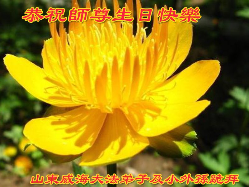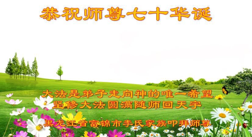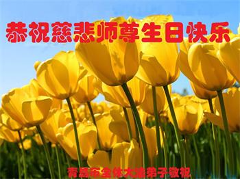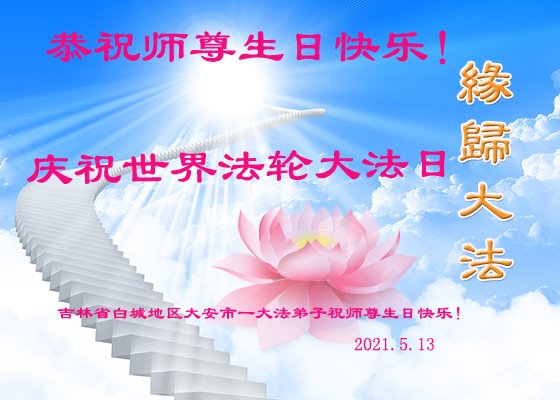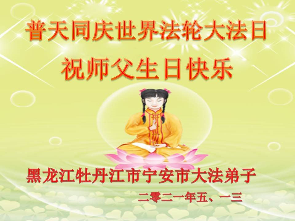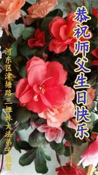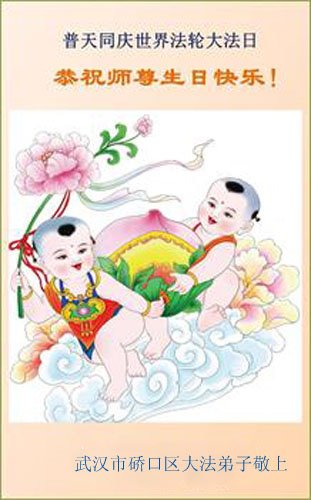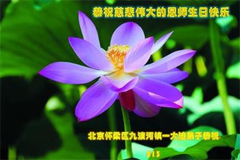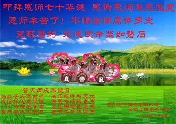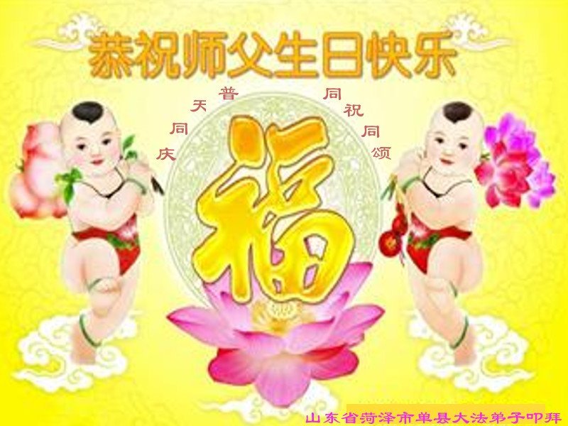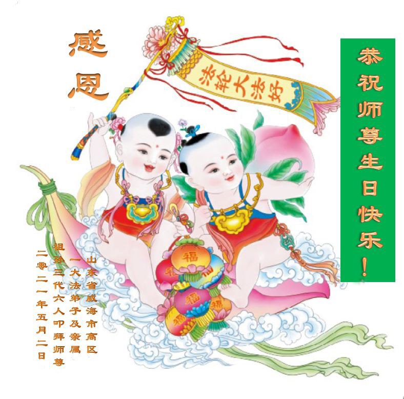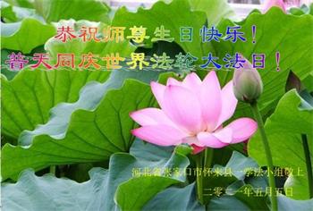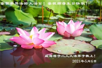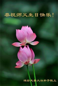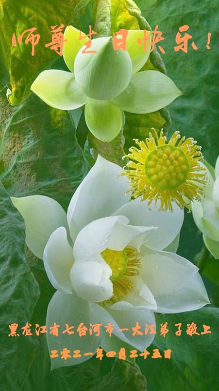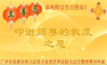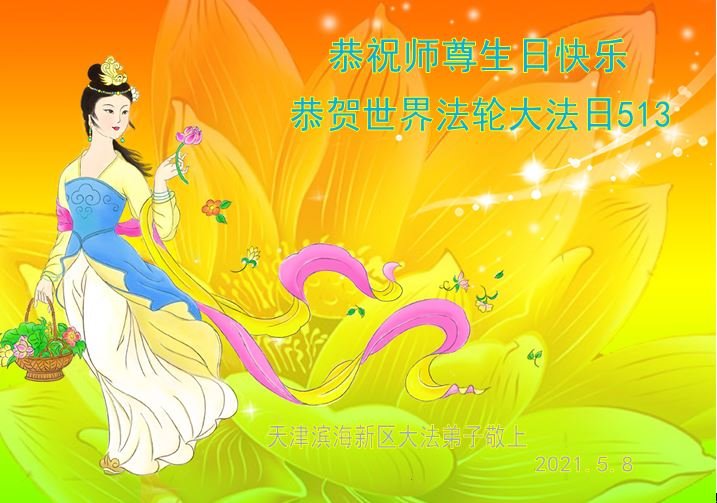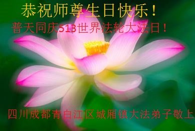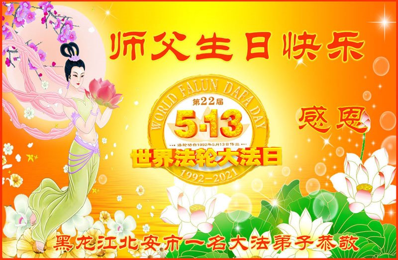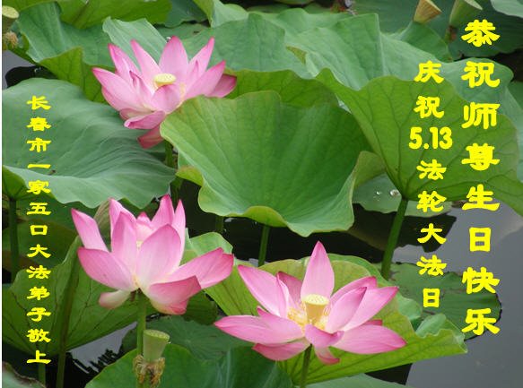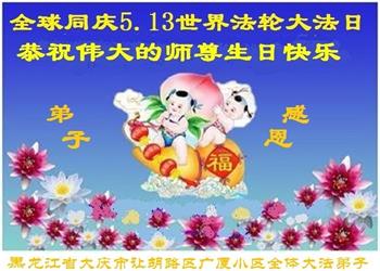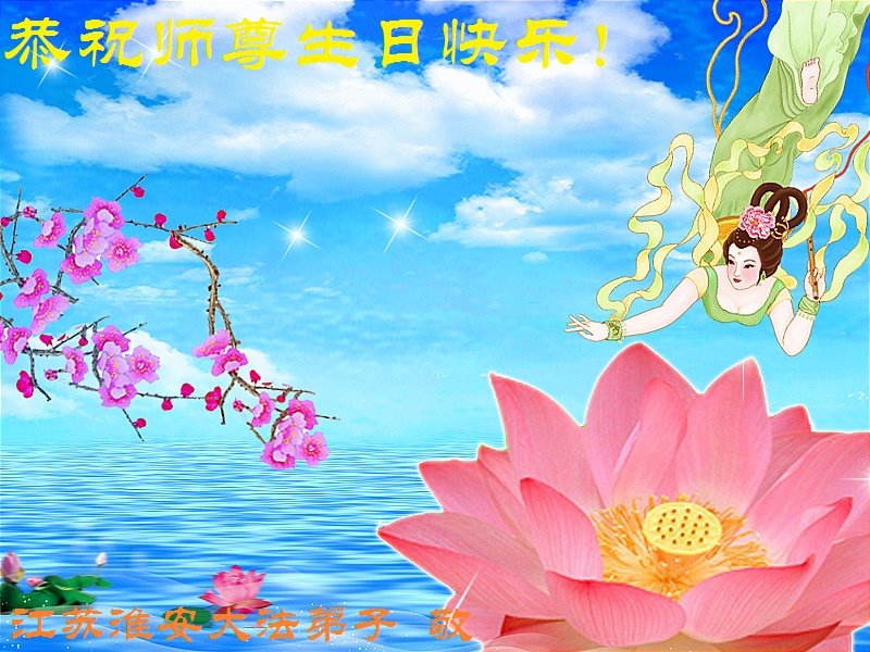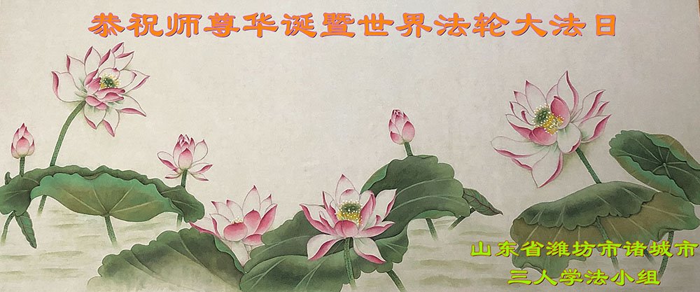 师尊您好!弟子恭祝师尊华诞!恭贺世界法轮大法日!在这普天同庆的日子里,弟子同歌同颂师尊之无量慈悲:感恩师尊把大法传给弟子,指引我们走上返本归真的大道;感恩师尊教导弟子做一个为他的生命,危难中不忘救度众生。弟子一定不忘使命,学好法,多救人,带领众生圆满随师还!弟子叩谢师恩!