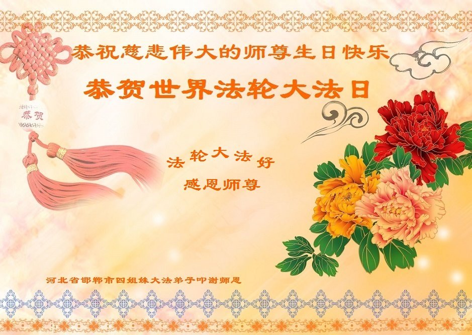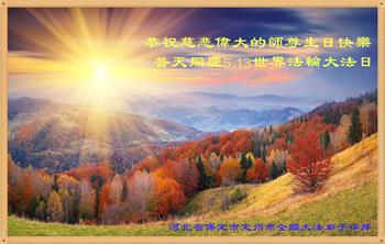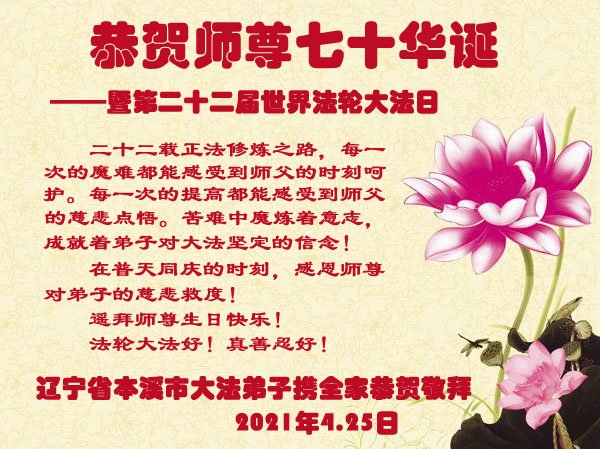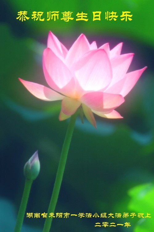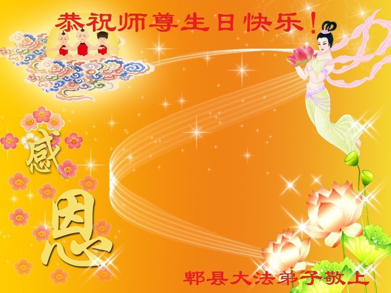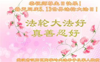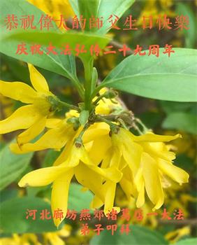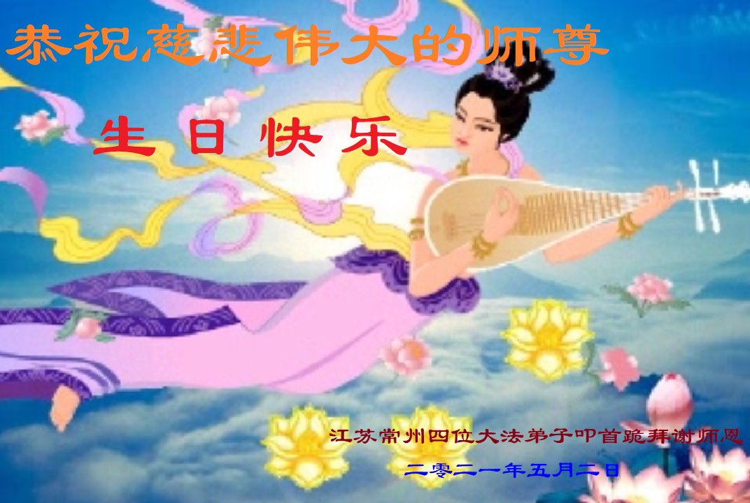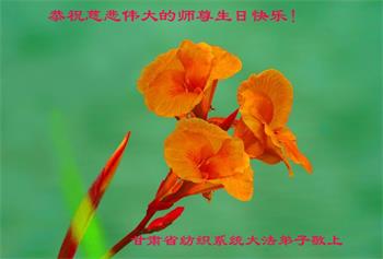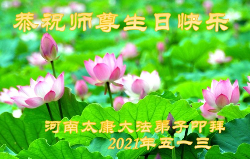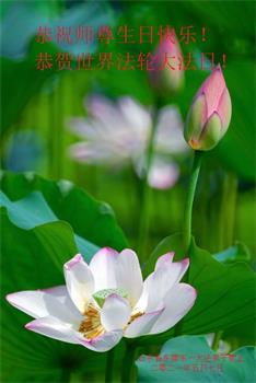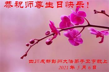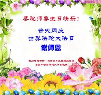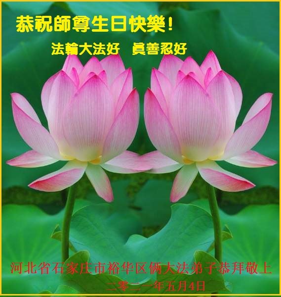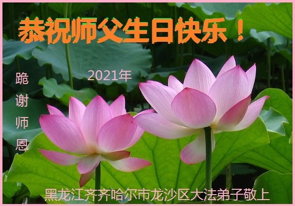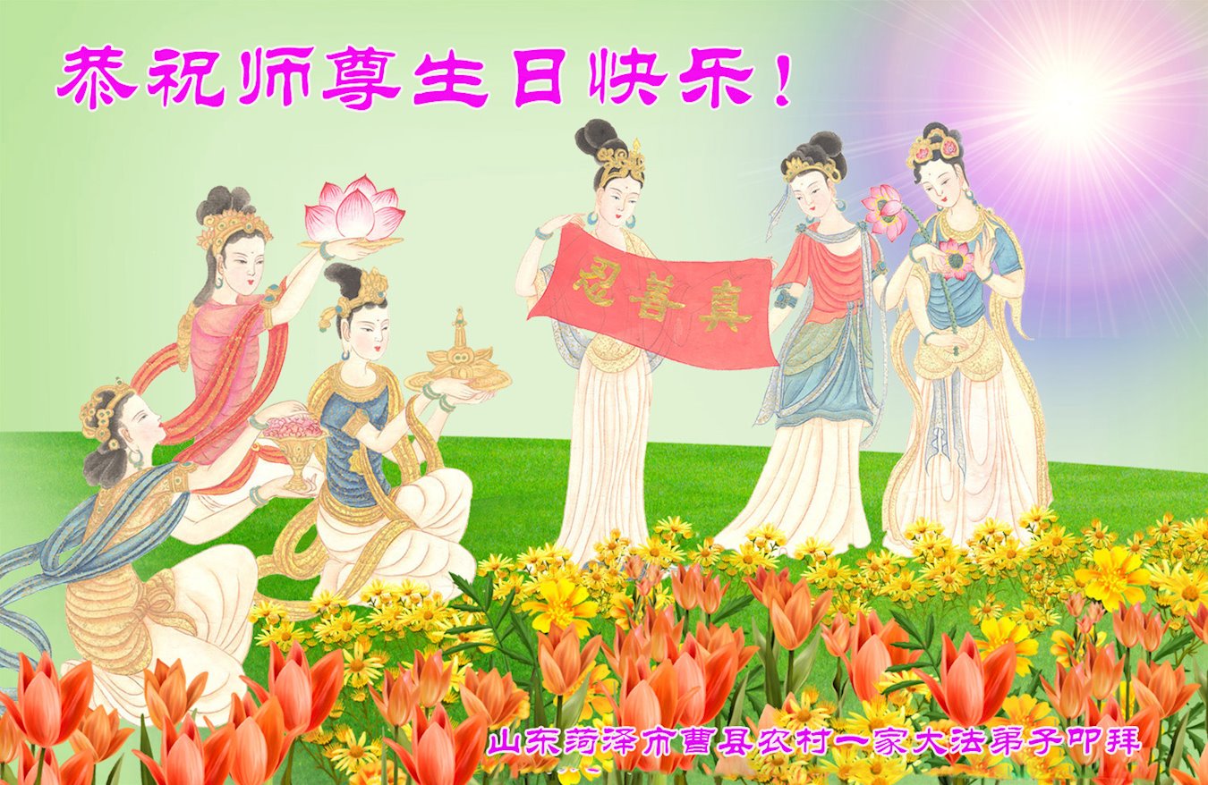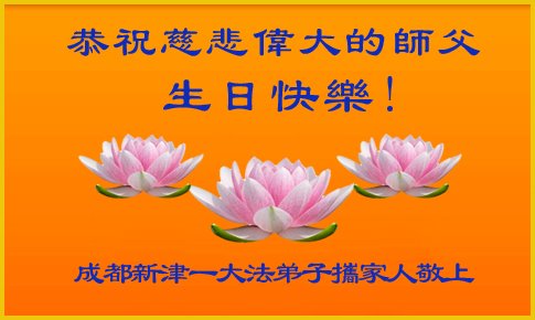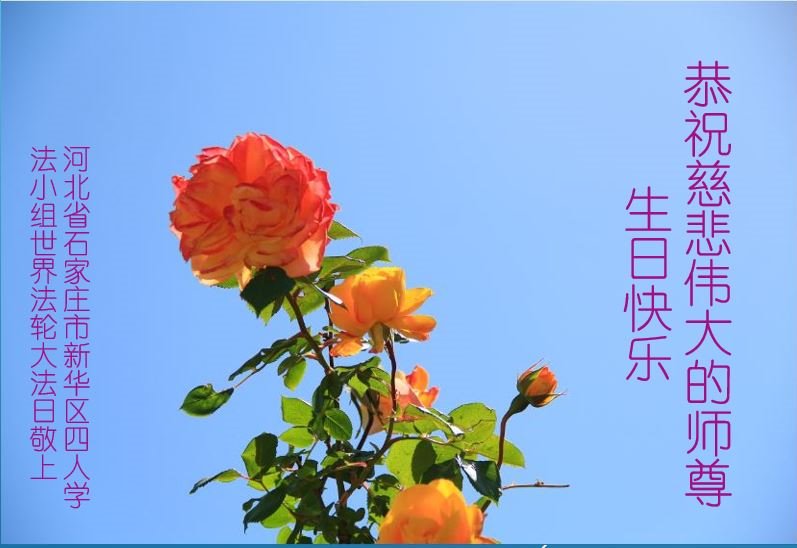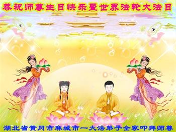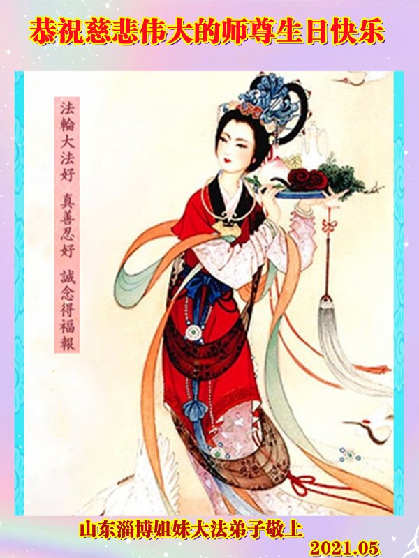 师尊您好!弟子恭祝师尊华诞!恭贺世界法轮大法日!在这普天同庆的日子里,弟子同歌同颂师尊之无量慈悲:感恩师尊把大法传给弟子,指引我们走上返本归真的大道;感恩师尊教导弟子做一个为他的生命,危难中不忘救度众生。弟子一定不忘使命,学好法,多救人,带领众生圆满随师还!弟子叩谢师恩!