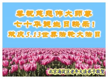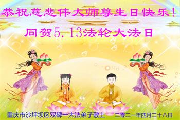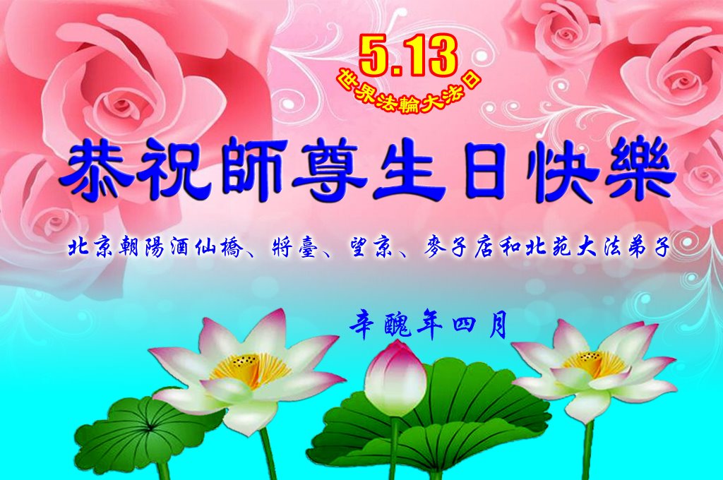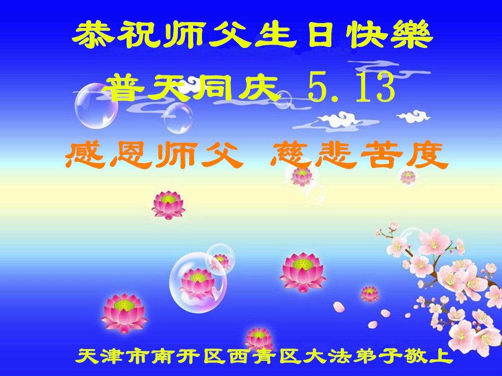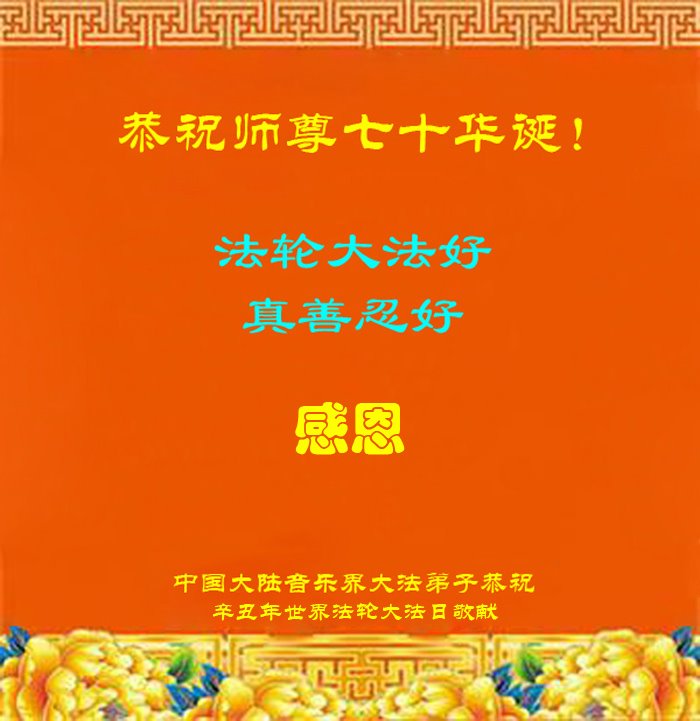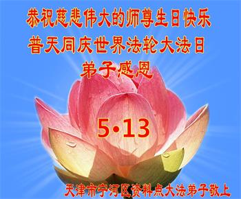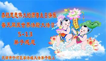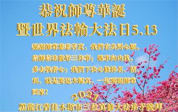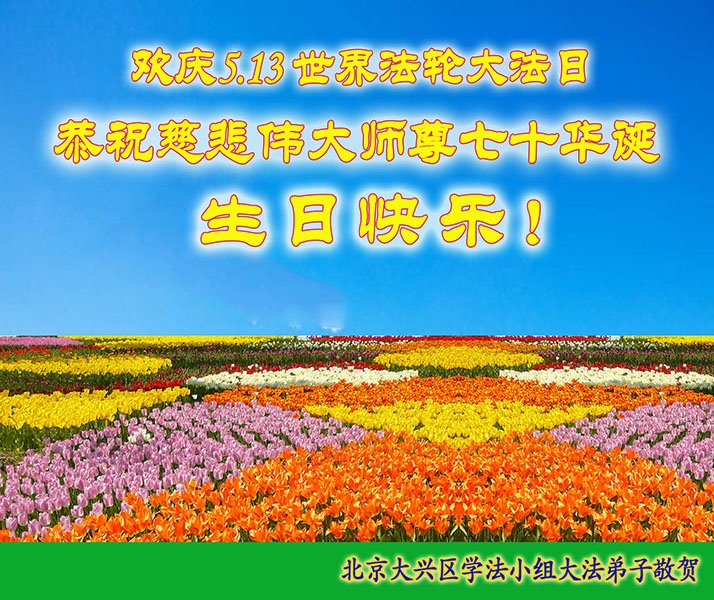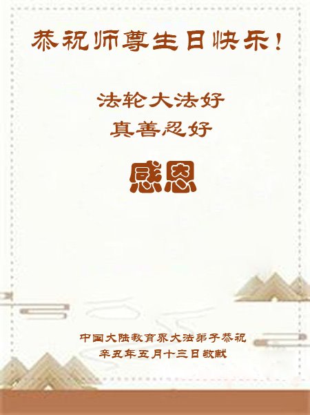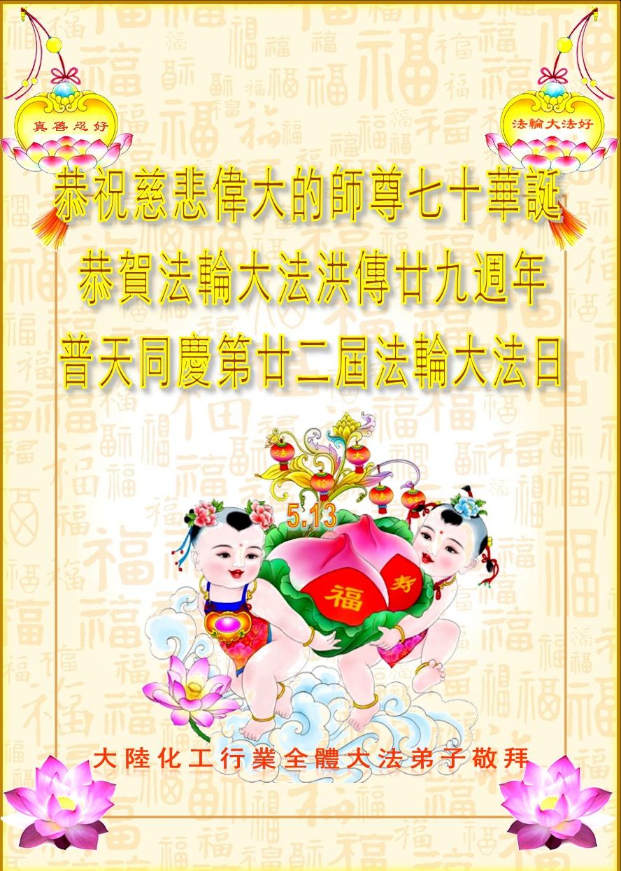 二十九年来,大法修炼者遍布中国大陆各个领域,在工作、学习、日常生活着践行着真、善、忍。值此五月十三日来临之际,来自中国五十余行业的大法弟子,遥祝慈悲伟大的师父华诞快乐!同贺世界法轮大法日!