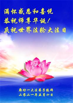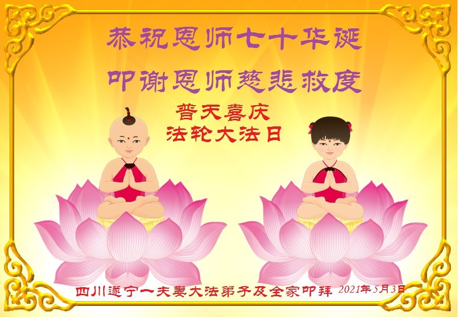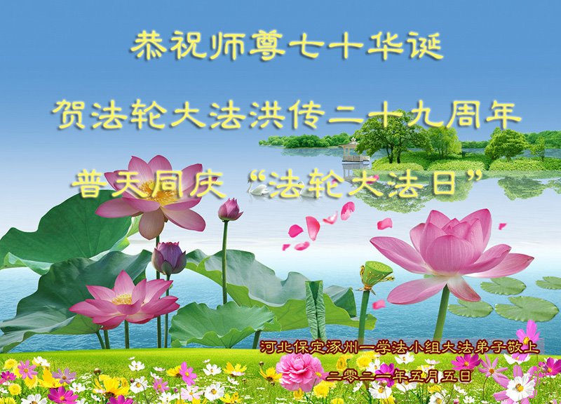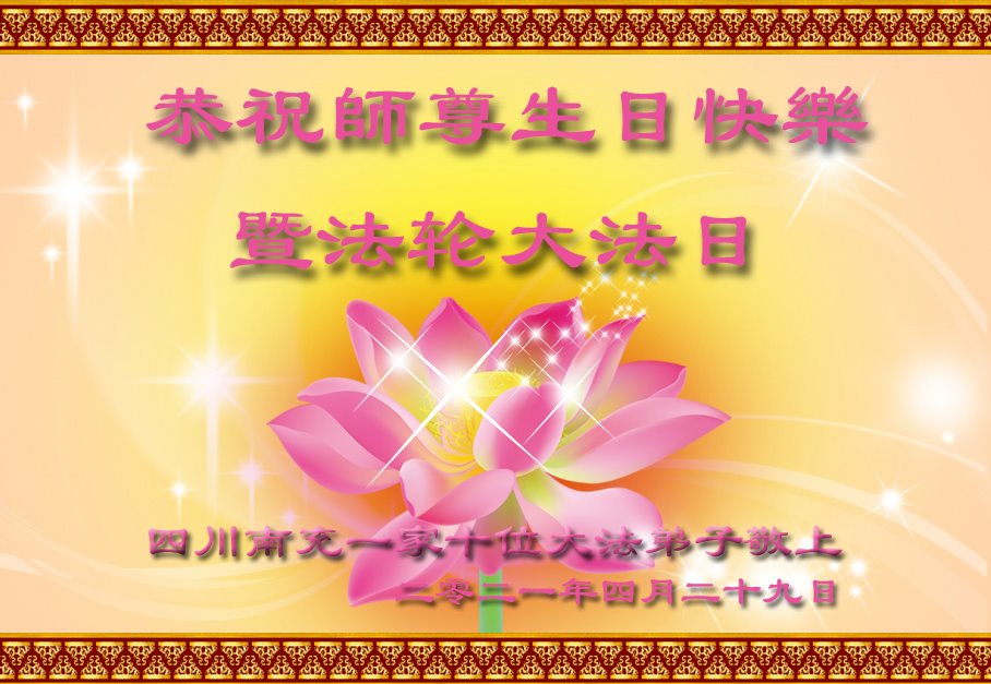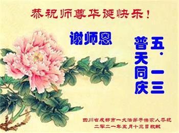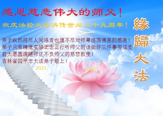 中国电子科技集团公司大法弟子表示:“在我们的人生中,最幸运、最自豪、最值得高兴的事情是我们修炼了万古不遇的法轮大法。师尊的洪恩与无边的法力无处不在,感谢师尊的苦度!无论正法时日长短,我们就是信师信法,走好师尊安排的正法路。”