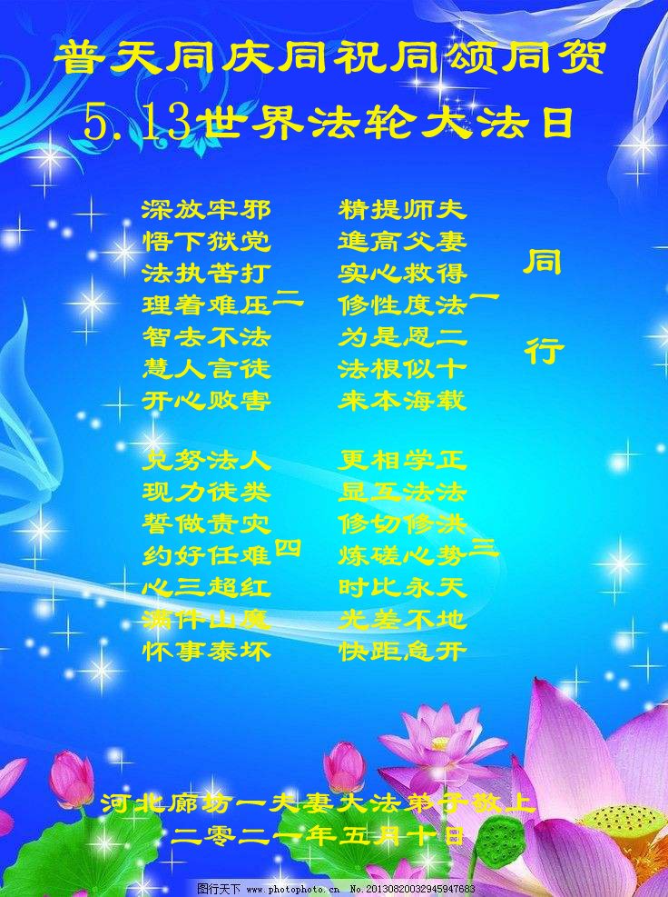 同贺五·一三世界法轮大法日!
