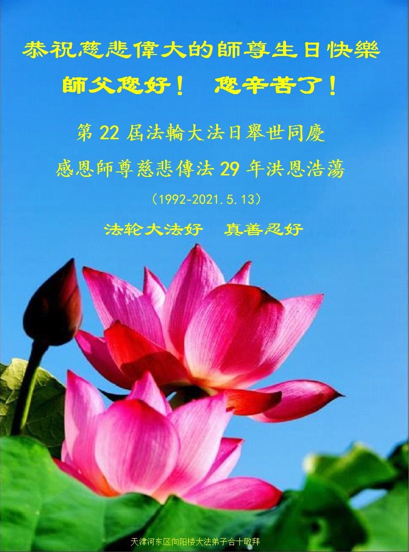 【明慧网二零二一年五月十日】人类走过漫长的历史,千万年的轮回,人们寻觅着生命从哪里来、向何处去?一九九二年的五月十三日,尊敬的李洪志师父第一次向迷中的人们揭示了生命的真谛;得法的人们在欣喜、震撼中传颂着──法轮大法是生命回归的渡船。