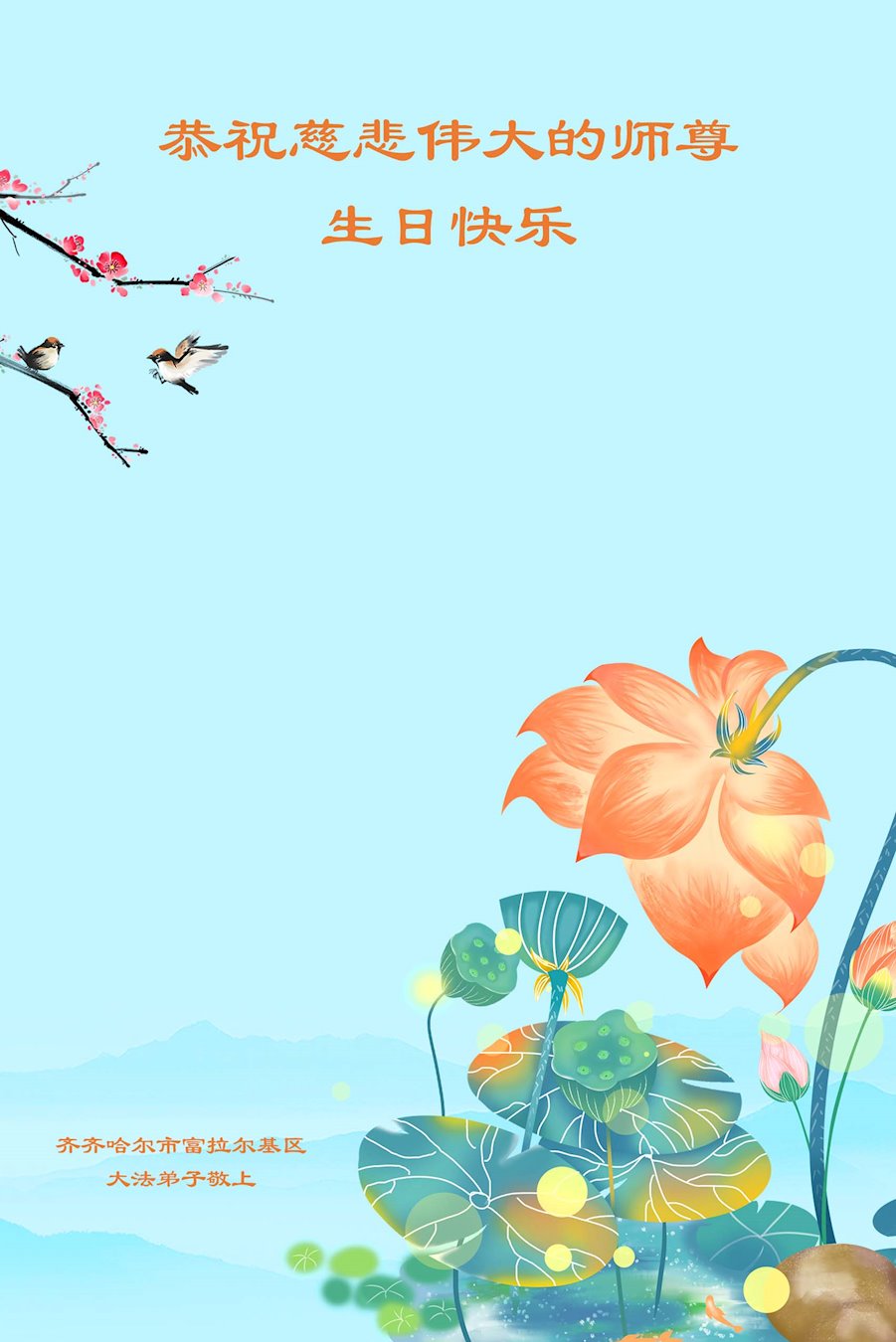 大连联通公司大法弟子恭祝师尊生日快乐!
