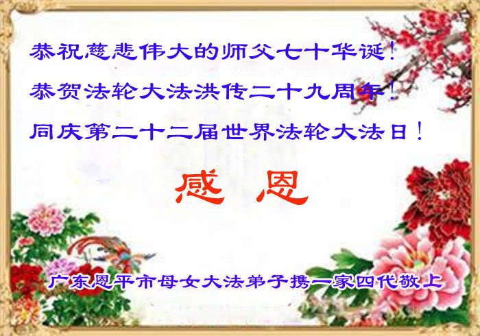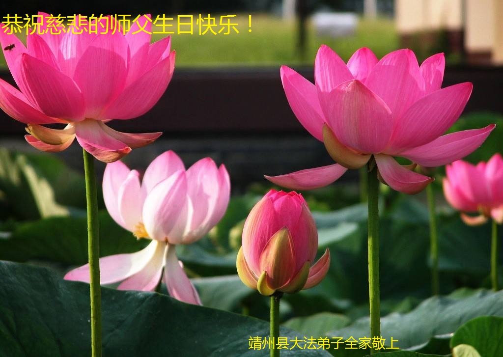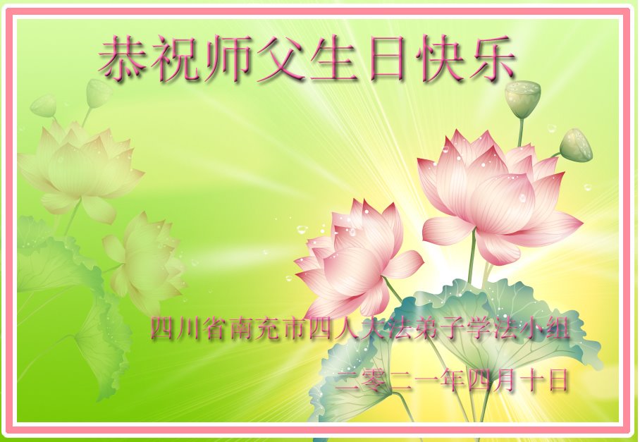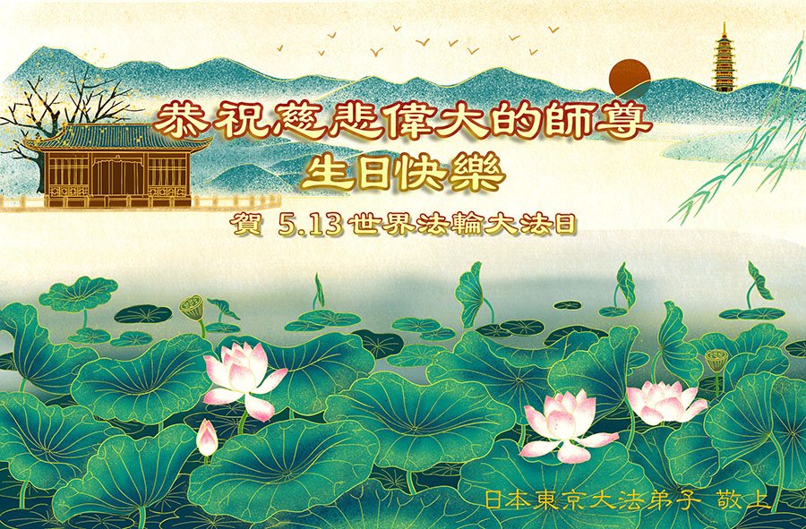 我们带着无比的敬意,向慈悲苦度众生的师尊,献上最诚挚的感恩和祝愿。我们一定会努力精進,把大法美好的福音带给世人。