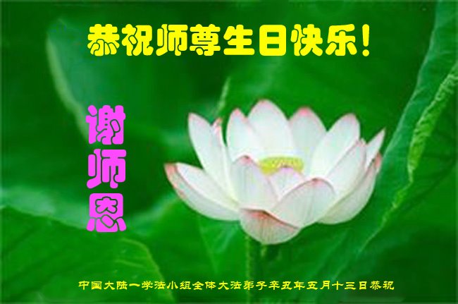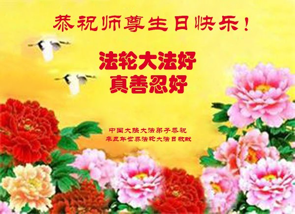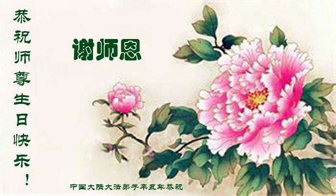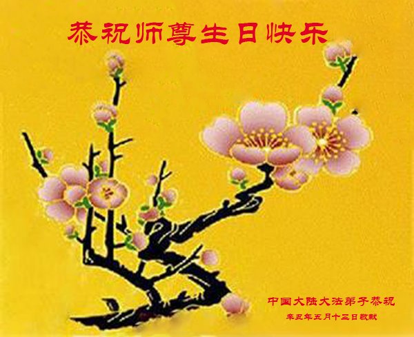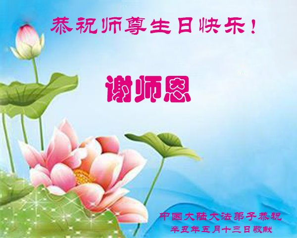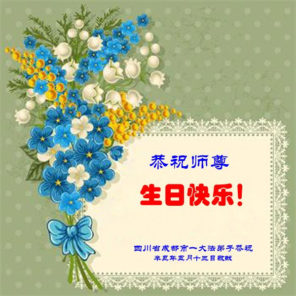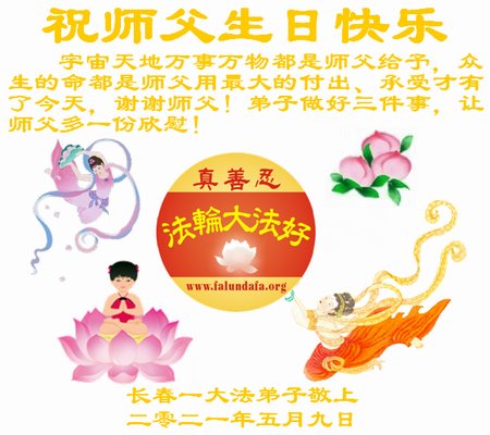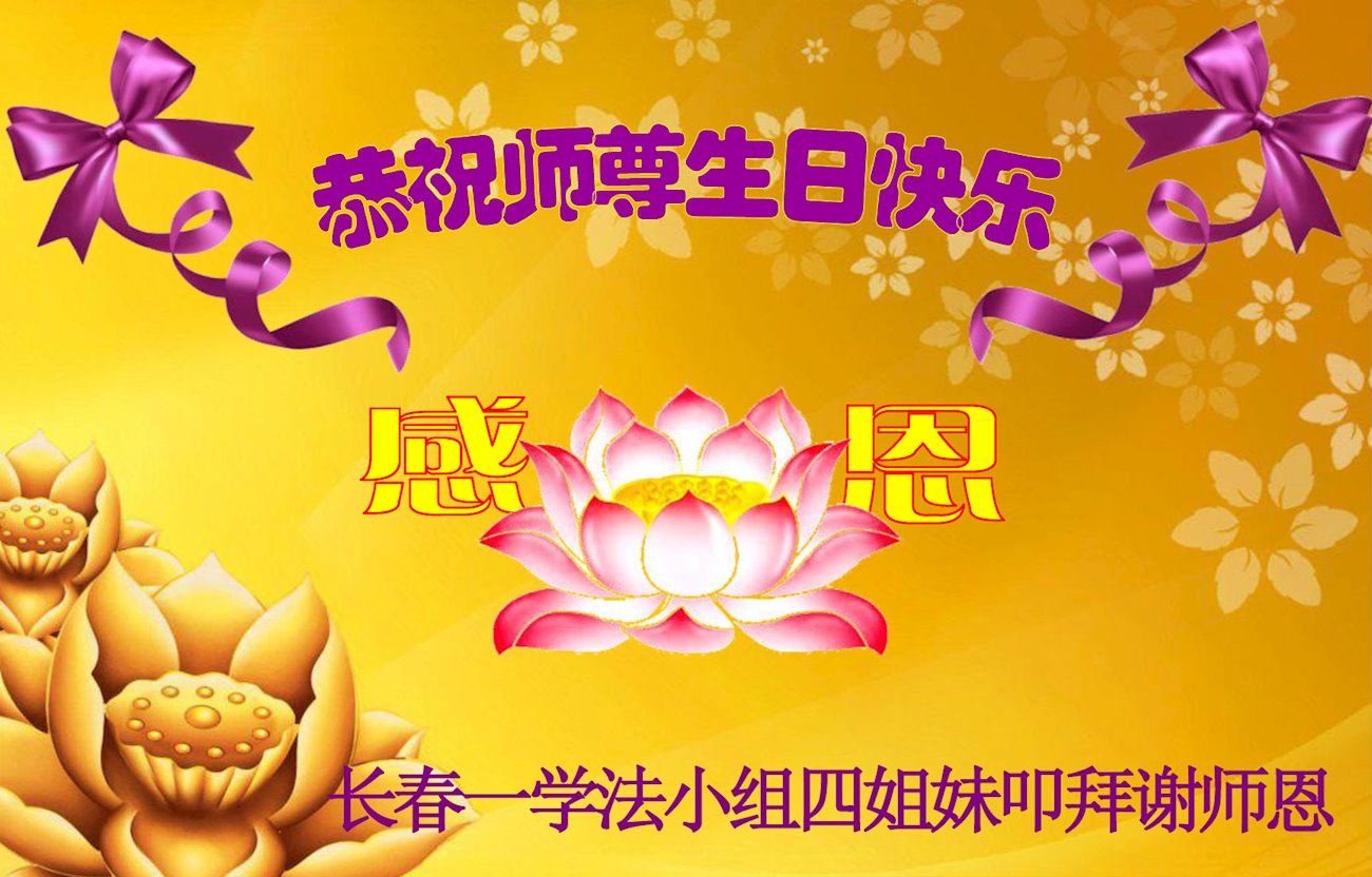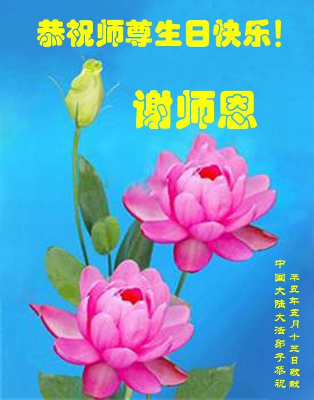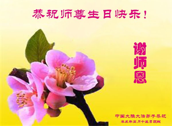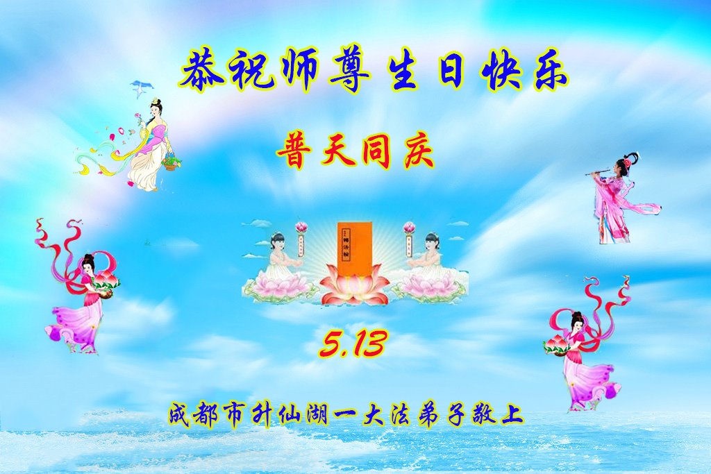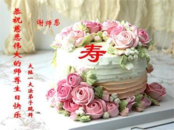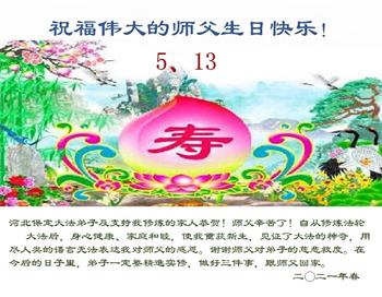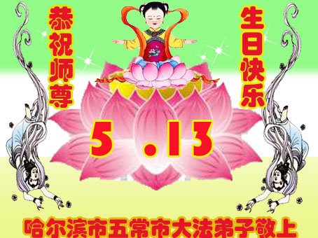 尊敬的师父:您好!您辛苦了!在“五·一三”到来之前,弟子心情好内疚,又一年了,自己提高了多少?回想起来好惭愧,时时事事要师父操心了。弟子有一个心愿:恭祝师父生日快乐!法轮大法好!真善忍好!