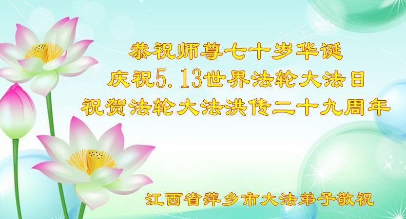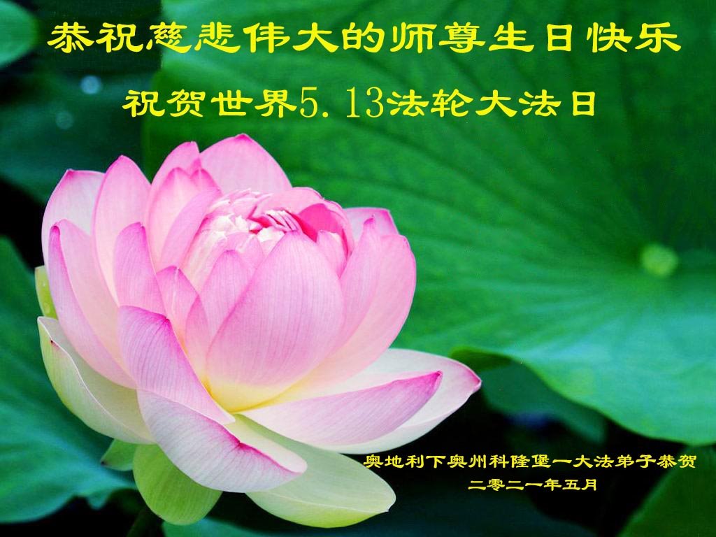 “五·一三”到来之际,世界各个国家和地区大法弟子恭祝恩师华诞快乐!同贺世界法轮大法日,法轮大法洪传二十九周年!下面是来自美国、澳大利亚、加拿大、新西兰、日本、越南、巴西、法国、英国、俄罗斯、芬兰、土耳其、瑞士、西非多哥、台湾、新加坡、西班牙、瑞典、奥地利、韩国、马来西亚、泰国、波兰、印度尼西亚、挪威、荷兰、塞浦路斯、泰国、保加利亚、捷克、斯洛伐克、德国、斯洛文尼亚、尼泊尔、匈牙利、爱尔兰、厄瓜多尔、克罗地亚、丹麦、意大利、波黑、希腊、乌克兰、罗马尼亚、塞尔维亚和黑山、葡萄牙、香港、澳门、墨西哥、菲律宾、比利时、加蓬、南非、印度、尼泊尔、伊朗、以色列、阿富汗、亚美尼亚、沙特阿拉伯、立陶宛、爱沙尼亚、拉脱维亚等63个国家和地区部份大法弟子的恭贺。