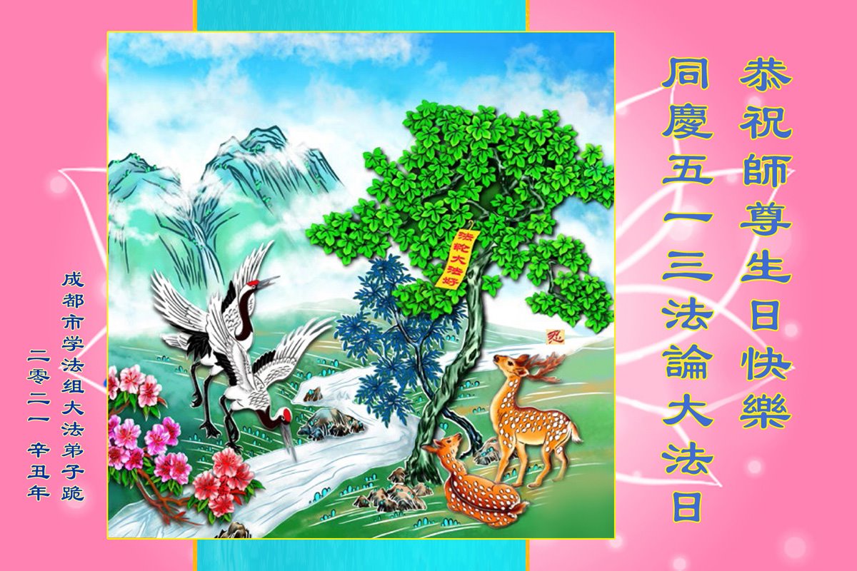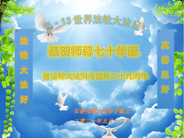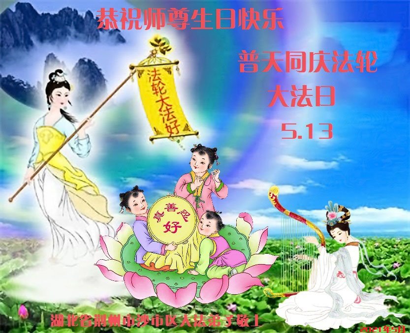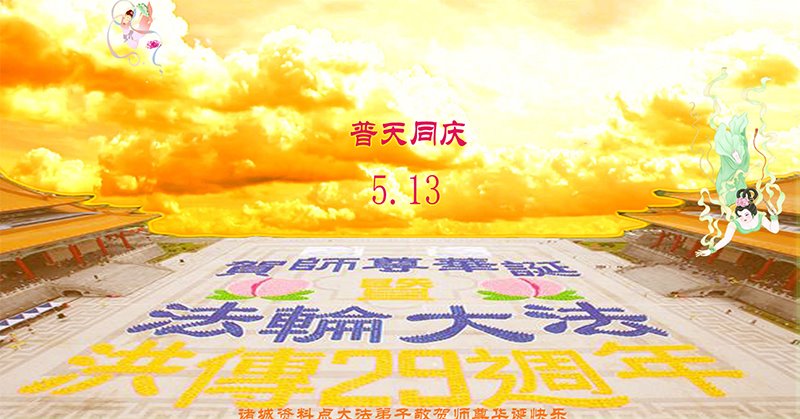 【明慧网二零二一年五月十三日】五月十三日是寰宇焕发光彩的一天。二十九年前的这一天,李洪志先生开始亲传法轮大法。末劫之时的宇宙有了生机,众生有了希望。至今,世界各地上亿人听闻大法,走上返本归真的修炼之路。大法给他们的家庭带来健康、和谐和幸福,给他们所在的国家和地区带来福祉。