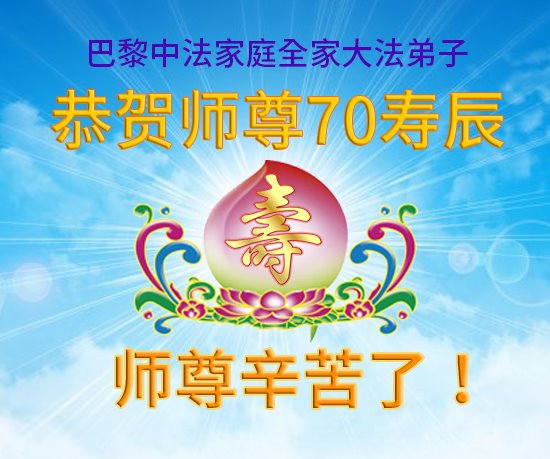 在这伟大的历程中,师尊救度并造就了我们,也救度了无量穹体、无尽众生于坏灭,赐予了我们与众生未来的一切。弟子们与众生对师父、对大法无比感恩之心难以言表。在这穹宇同庆、万众感恩的圣日里,全体法国大法弟子向慈悲伟大的师尊问好,恭祝师父生日快乐!
