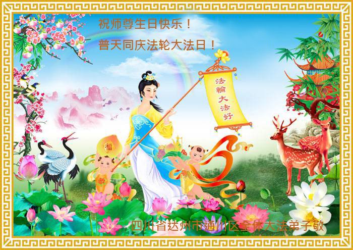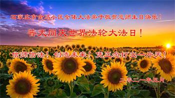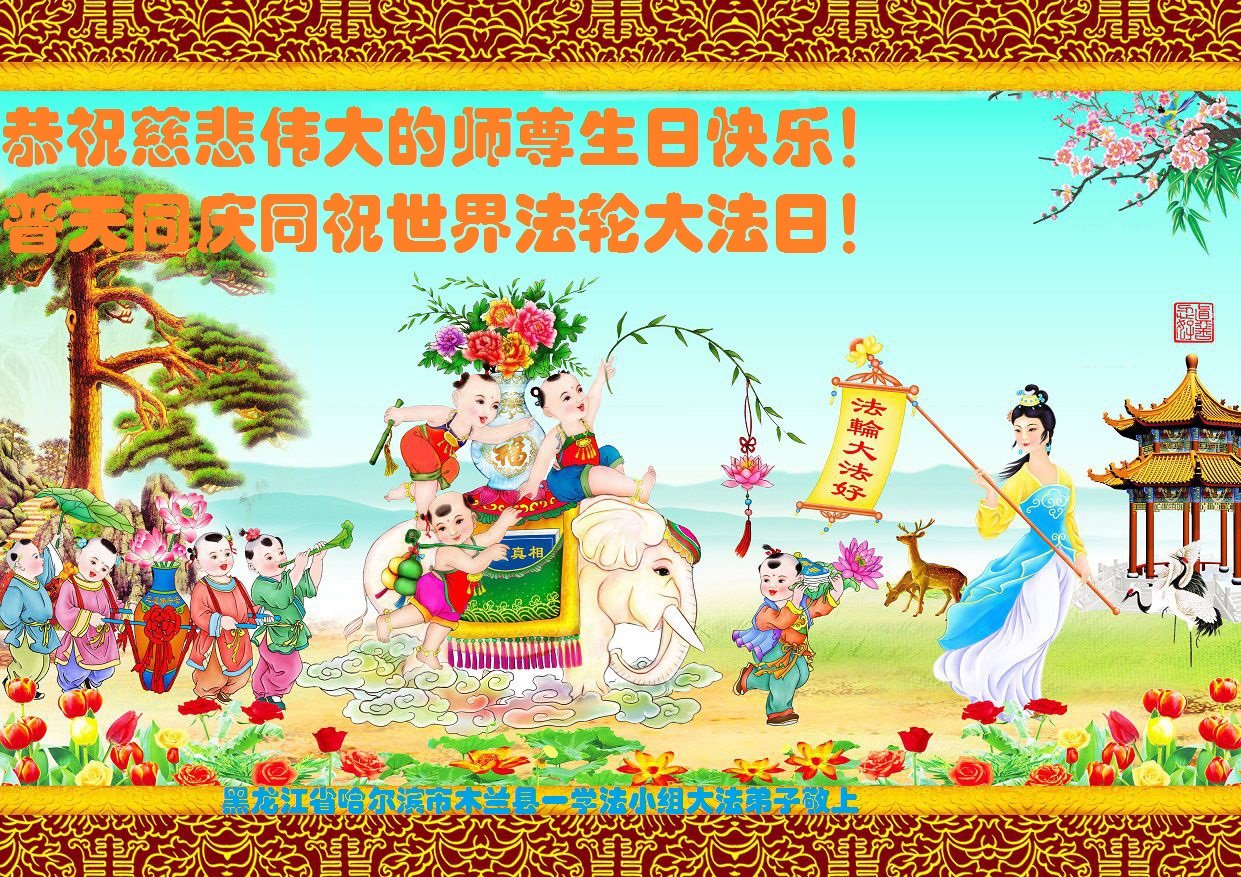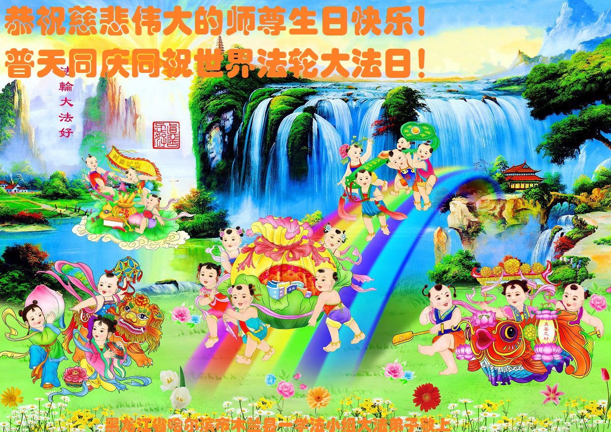中国各省广大农村地区大法弟子热忱祝贺师尊华诞!恭贺世界法轮大法日!大法弟子们由衷的感谢师父引导弟子们走上返本归真之路,并时时刻刻看护着弟子。弟子们走过了二十多个年头,虽有千言万语,不知从何说起。唯有更加精進实修,多救人,兑现来世的誓约,不负师恩。