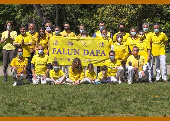 法轮功学员们来到佛罗伦萨市的城市公园,庆祝世界法轮大法日,暨法轮大法弘传二十九周年,并恭贺师尊七十华诞。