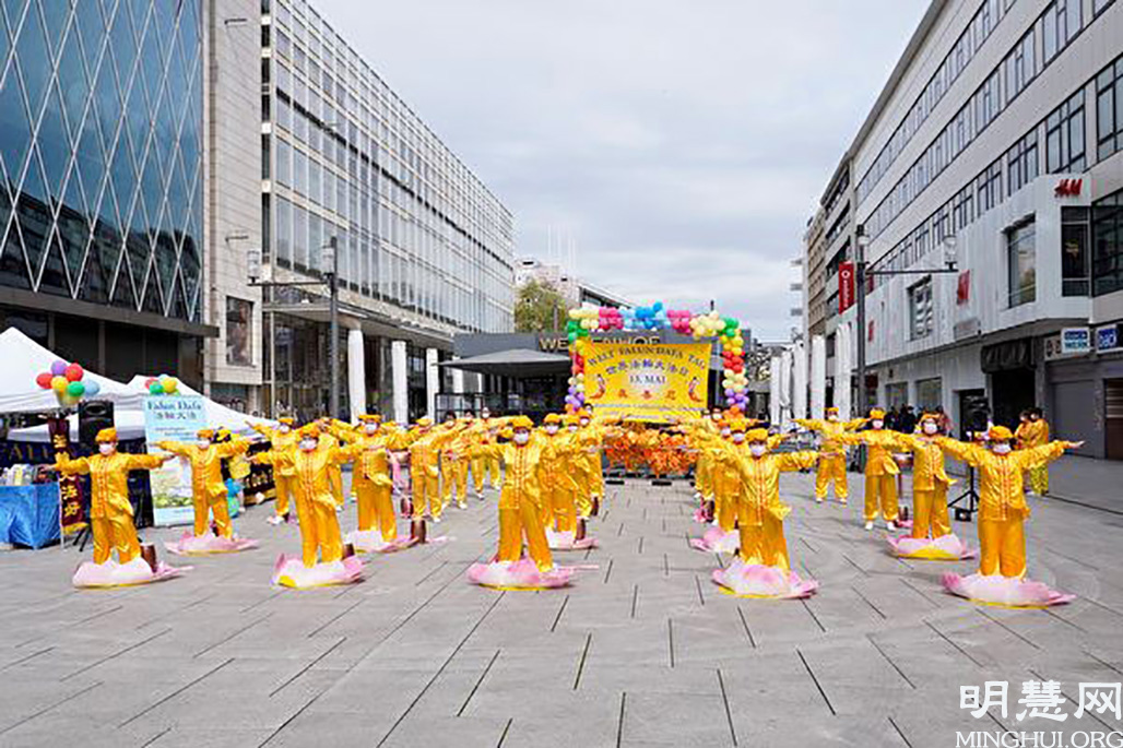 ![]() 图1:二零二一年五月八日,德国法轮功学员在法兰克福庆祝世界法轮大法日暨师尊七十华诞。 |