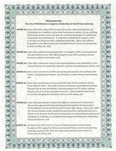米德尔敦市(City of Middletown)嘉奖世界法轮大法日