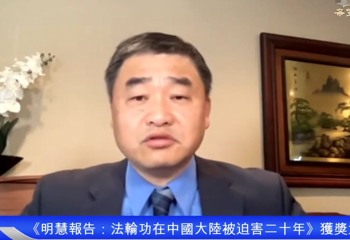 ![]() 图:2021年5月17日,评论员蓝述先生在希望之声电视访谈节目中表示《明慧报告》获奖意义重大。(视频截图) |