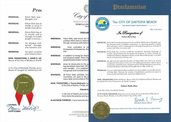 佛州三城市宣布法轮大法日 鼓励居民实践真善忍