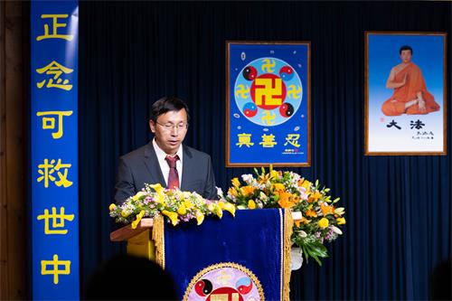 在法会上,吴女士分享了自己如何克服困难,在纽约中领馆前打横幅讲真相的过程与体验。