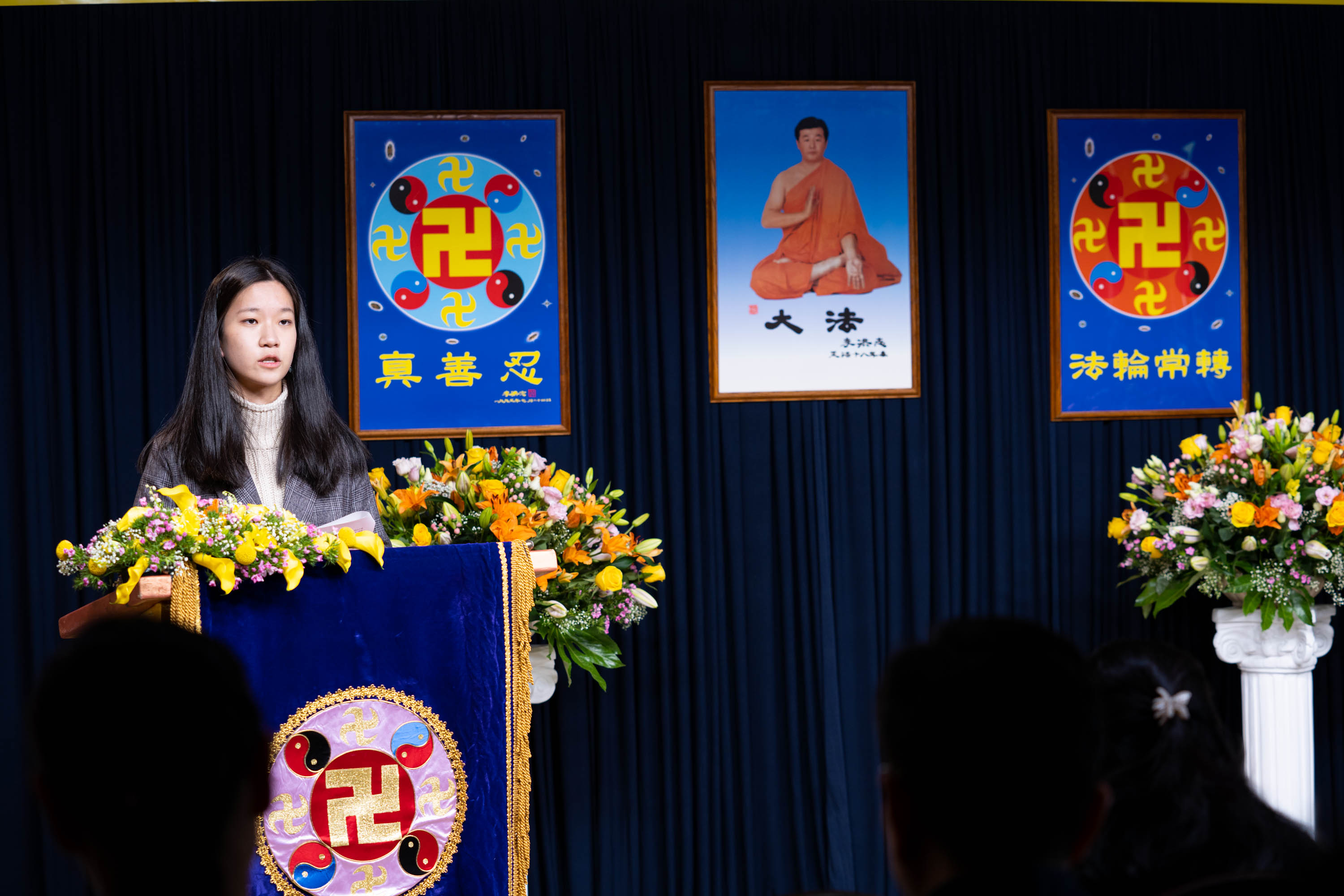 今年十岁的Alina陈自二零一九年开始,有了要给大陆民众打电话讲真相的想法,于是付诸行动。在法会上,她交流了自己在此过程中成长的体会。