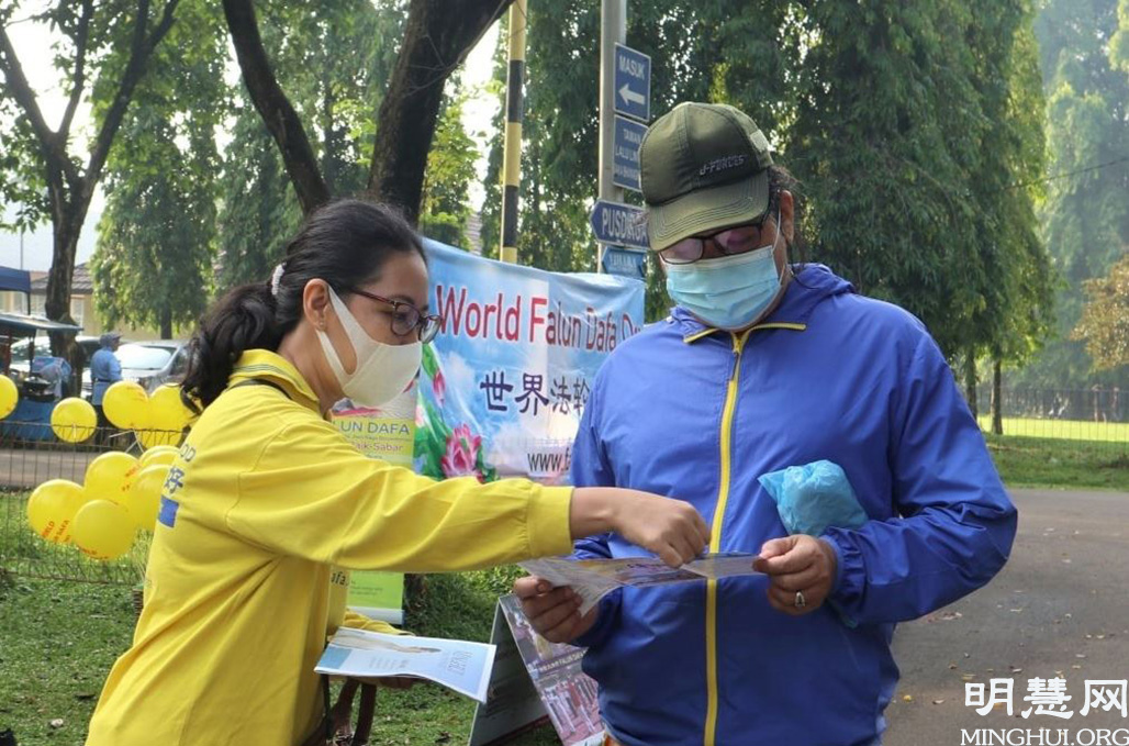【明慧网二零二一年六月一日】2021年5月13日是法轮大法弘传世界29周年,也是第22届世界法轮大法日。印度尼西亚雅加达法轮功学员于5月30日聚集在东部季布布尔(Cibubur)营地举办集体炼功,介绍功法等活动,表达对法轮大法师父的感恩,并为能够在法轮大法中修炼、从而在道德和身心上都获得提升与健康而深感幸运。
