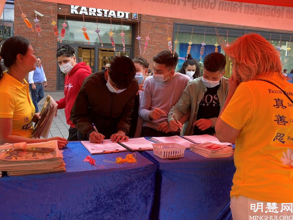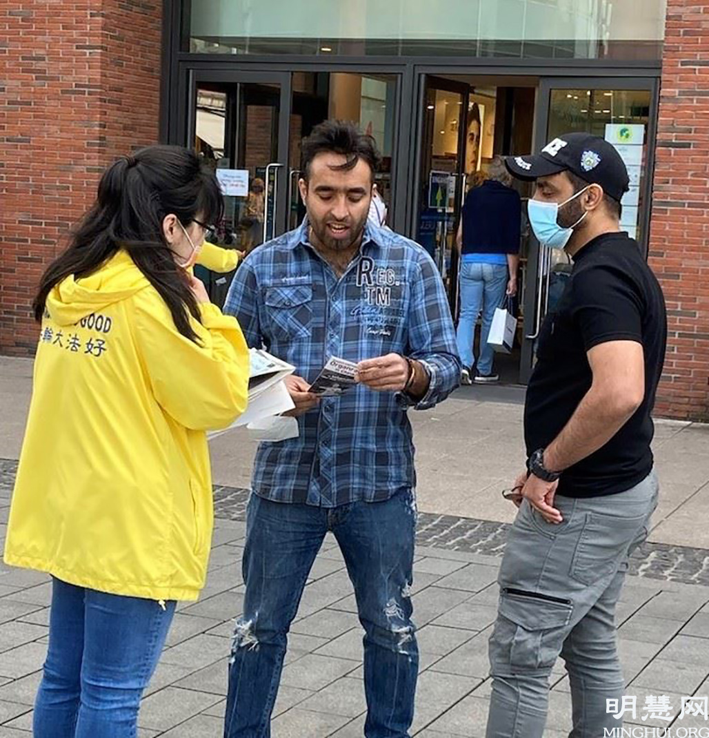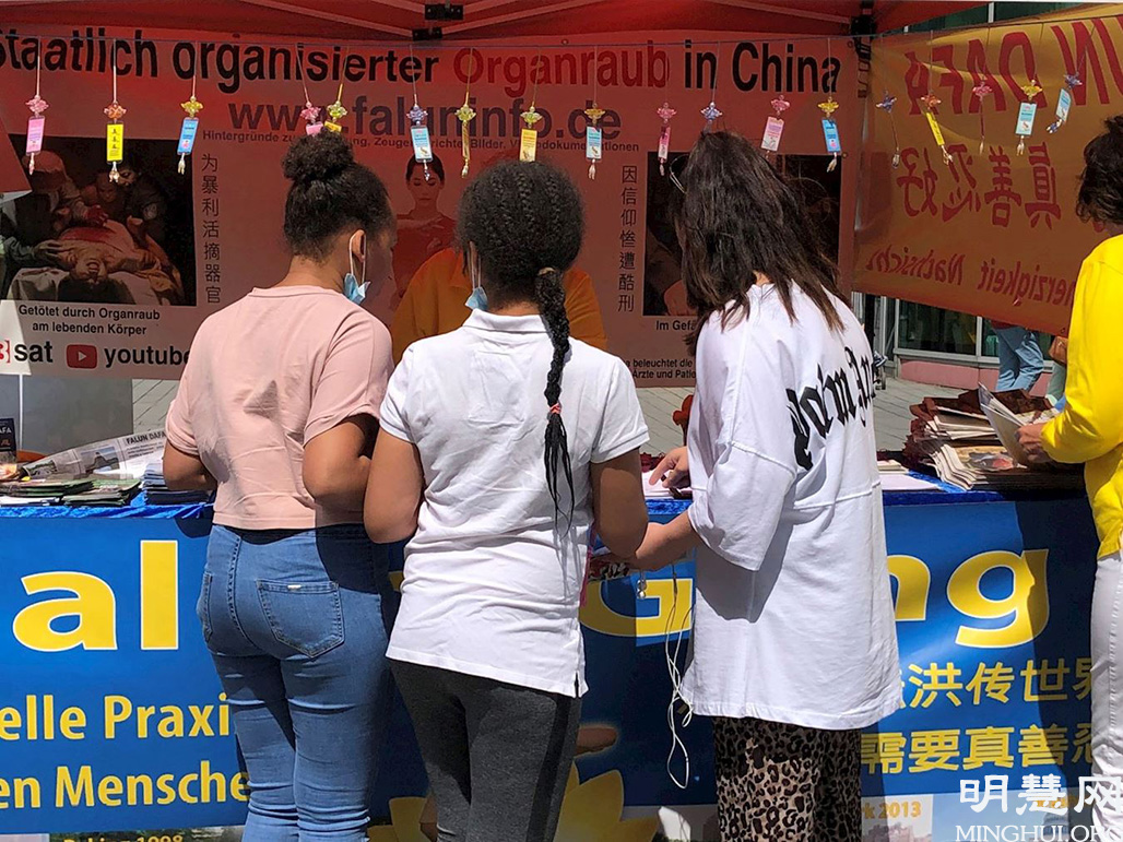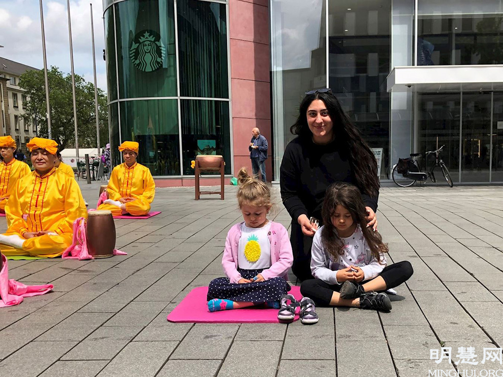 类似的活动在当地已经举办了多年,很多民众因此听说了法轮功。住在杜伊斯堡的梅尔芙(Merve)就是其中之一。她告诉学员:“我在两年前看到你们的活动,当时就签名反迫害。回家后,我在网上找到了法轮大法的相关信息。现在,我也开始读《转法轮》这本书了。”梅尔芙还将了解到的法轮功真相分享给姐姐和两个小外甥女。当天她们在真相点附近待了两个多小时。两个外甥女几乎一直都在学员身边,学做炼功动作。她的姐姐很高兴自己的孩子对大法的功法如此感兴趣。她和梅尔芙不时纠正孩子们的动作,还鼓励她们坚持做完第五套功法。