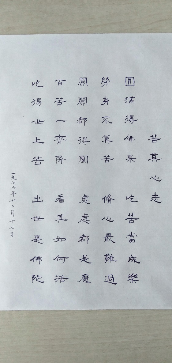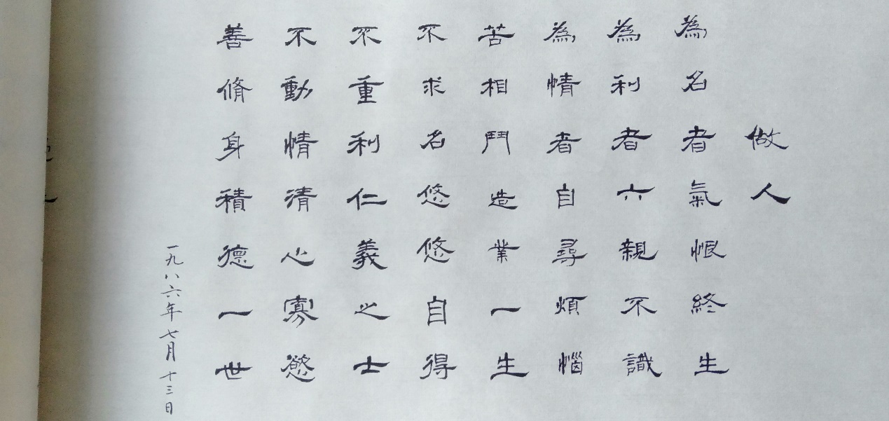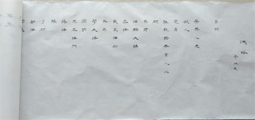 杨峰修炼法轮大法后,按照真、善、忍,内心更加善良,沉静。他写得一手好字,下面是他手抄大法师父的经书的部份内容。学过毛笔字的人都懂,苦下功夫、心平气和,才能写出这样一手好字。