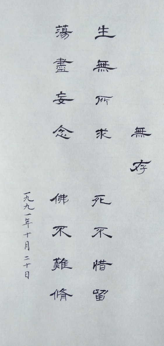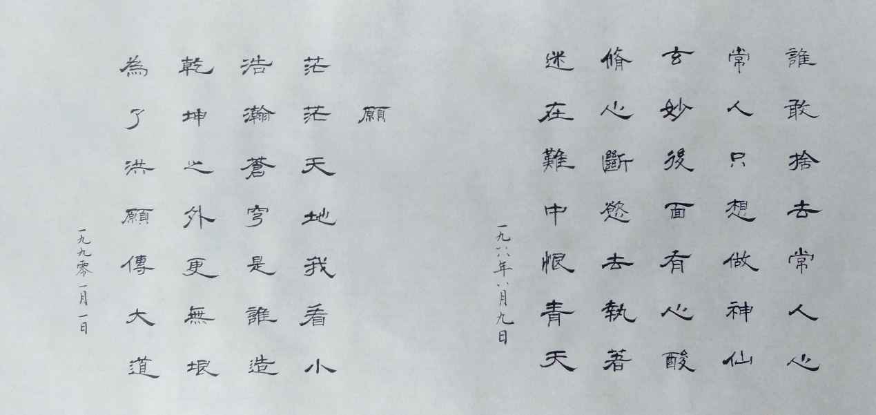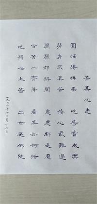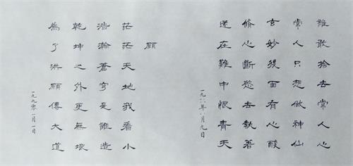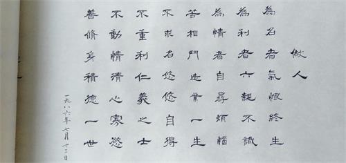 常言说:“字如其人”,杨峰,一位历经重重苦难而仍坚修法轮大法的大法徒,将他的善良、沉稳和坚毅渗透在每个字的笔画中,渗透在字里行间,他对法轮大法的虔诚与敬重,令人肃然起敬。