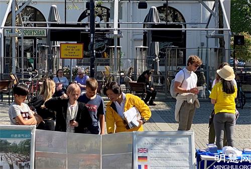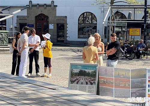 安德士(Anders)来到拉姆广场与法轮功学员交谈。他是一位当地报纸的资深记者。他问学员:什么是法轮功?以及中共为什么迫害法轮功?