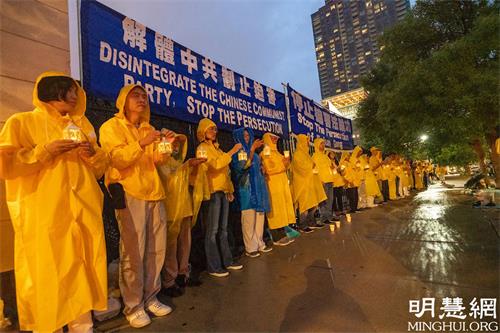 图2~3:部份芝加哥法轮功学员再中领馆前举行烛光夜悼活动