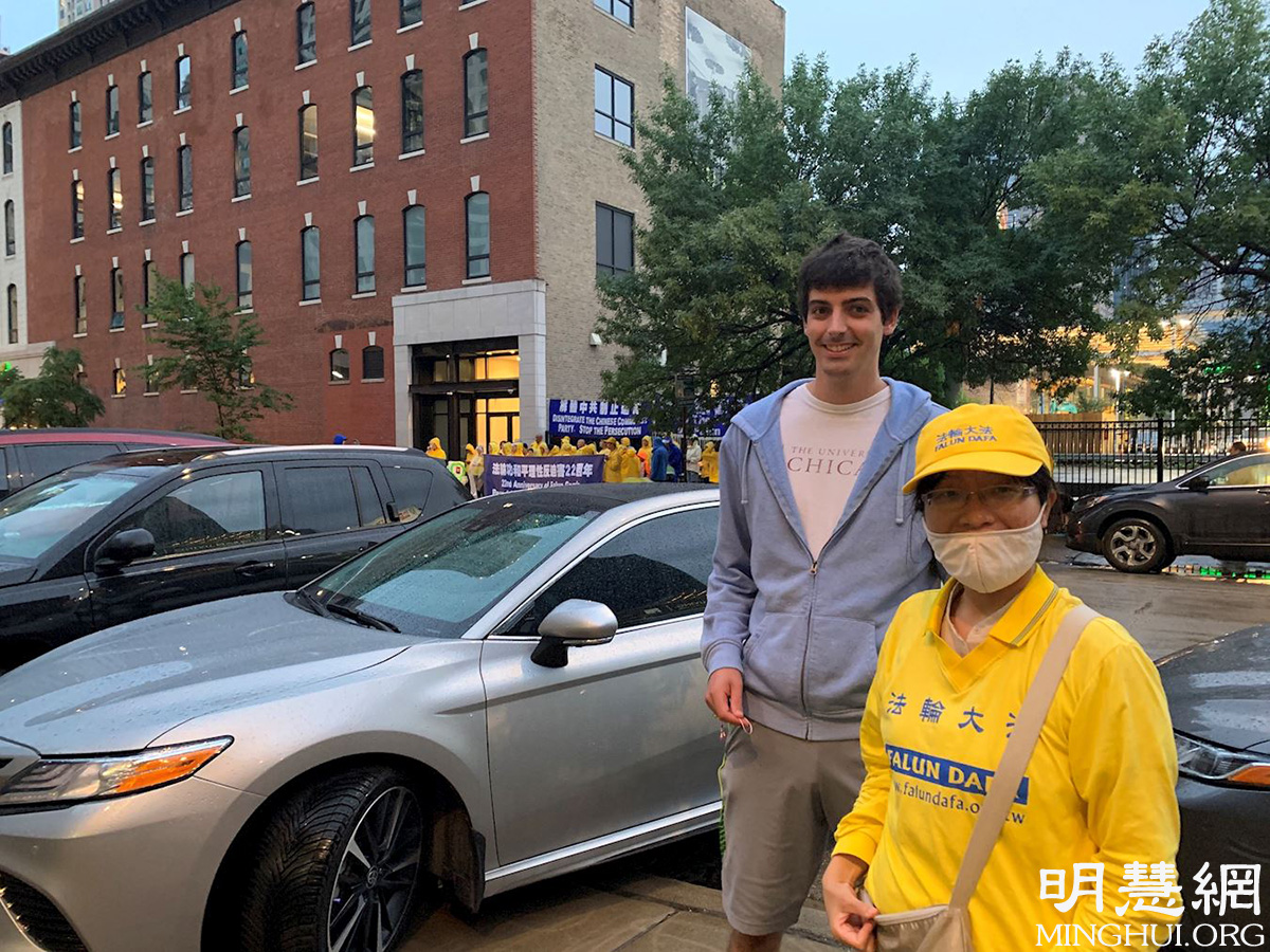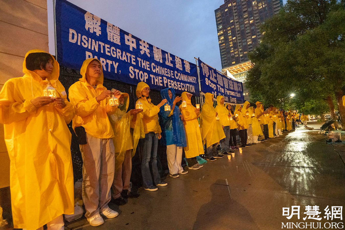 二十二年前的一九九九年七月二十日,以江泽民为首的中共邪恶政权,对修炼“真、善、忍”的法轮功群体发起了灭绝性的血腥迫害,数以百万计的法轮功学员被非法抓捕、判刑、 面对中共二十二年残酷迫害,法轮功学员没有被吓倒,坚持对“真善忍”普世价值的正信,一如既往地向人民讲述法轮功真相。法轮功学员的和平理性和坚韧不拔每年都赢得各界的赞许和支持。 二零二一年七月,伊利诺伊州众议院更通过HR0029号决议案,指出:在中共发起旨在消灭法轮功的全国性的严重迫害的22周年之际,我们强烈谴责对法轮功的迫害。法轮功是以真、善、忍价值为核心,融合了打坐炼习的精神修炼功法”、“中共开展了大规模运动来消灭法轮功及其真、善、忍的中心价值,这也是对人类良知的攻击”。 点点烛光悼念被迫害致死的学员 今天的芝加哥,绵绵细雨如泪,芝加哥学员集聚中领馆前,悼念那些为了坚守自己的信仰与良心、为了维护真善忍普世价值、为了叫醒被谎言蒙蔽的世人而被中共迫害致死的法轮功学员们,夜色中点点烛光闪烁,芝加哥学员比邻而立,坚守真善忍的光辉永世长存。 过往民众打着伞了解法轮功真相,驻足倾听学员发言,有的接过传单,有的在征签表上签字。车辆等信号时,不少车主摇下车窗观看横幅,索要传单,并表示希望进一步了解和学炼。 车主尼克(Nick)将车开到拐角停车处,停下来与学员交谈,他早已知晓法轮功被迫害,并询问是否我们每天都在这里反迫害。他表示这种恶行该停止了,并在征签表上签名。他临走时说:“我们还会见面的。” 揭露受迫害经历 因坚持修炼法轮大法被中共多次非法拘留、关押的法轮功学员于海文女士控诉以江泽民为首的中共邪恶政权对法轮功犯下滔天罪行。 她在发言中说:“七月二十号,每年这个日子的即将到来都会让我内心久久不能平静。一九九九年因江泽民妒嫉,在其利益集团的策划下对大法进行诽谤、栽赃嫁祸、并扬言三个月消灭法轮功。我亲身经历了那场还在进行中的对法轮大法修炼者的腥风血雨般毫无人性的残忍迫害。 “一九九六年初二十多岁就有肺结核、病毒性心肌炎,血小板低下的我有缘走入法轮大法修炼者的行列,不知道各种疾病是何时消失的、连出生就体弱多病的儿子也从此远离疾病!和我一样,很多大法修炼者都把大法的美好和神圣分享给亲朋好友、那时全中国到处都是大法弟子晨炼的祥瑞景象。 “迫害开始后为了争取信仰自由,一九九九年九月份我去北京上访,在北京被绑架关押,然后又送到本地非法关押一个月,十二月份我又去北京上访被截回当地非法刑事拘留,并非法劳教……在劳教所期间因不放弃信仰不写保证书,不让上厕所,拉在裤子里。在劳教所每天强行劳动二十个小时左右,用羽毛做各种小鸟。因为长期用眼睛在强光下疲劳导致眼睛高压散光,看不清东西,看人都分不清是谁,劳教所就借机给我强行灌一种小白片的药物,不但眼睛没治好,牙齿在短时间内根部变黑断掉。半年以后当地公安局和市长办公室来劳教所找几个有代表性的人回到当地,说只要参加一个转化大会,说不炼了就可以直接回家,否则就送监狱。我坚定拒绝他们的各种威逼利诱后被送回劳教所,回去半年不许我和任何人说任何一句话,四个人每天监视我,和精神病人住一张床,天天挨骂,一米长的电棍在我眼前晃来晃去。一年后出来时我的门牙、大牙都断掉了,满口没剩几颗完整的牙齿,心脏、眼睛都出现症状,一年内老了十几岁。” 发言中她还说:“二十年前,我身边一起炼功的同修们好多人都被中共迫害的家破人亡,最熟悉的同修被迫害死的就有十几个,宋兵、陈勇哲、童震天、陈德喜、孔繁荣、孙建华等都是我每个周末在一起学法的同修。还有的失踪、残疾、多少人被活摘了器官、好多孩子们变成了孤儿。那时每天一起晨炼的同修宋艳群、李春环、刘达鹏等今天还在被非法关押迫害中。” 法轮功学员代表苏女士在集会上说:“自二零二零年以来,由于中共对 COVID-19 的掩盖,导致病毒传播到全世界,有超过四百万人丧生。我们希望每个人都能分辨是非,善恶。我们希望更多世界人民将站在正义一边,了解并传播真相,拒绝中共,立即结束这场残酷的迫害。选择站在正义的一边,你将为自己选择一个光明的未来。”
